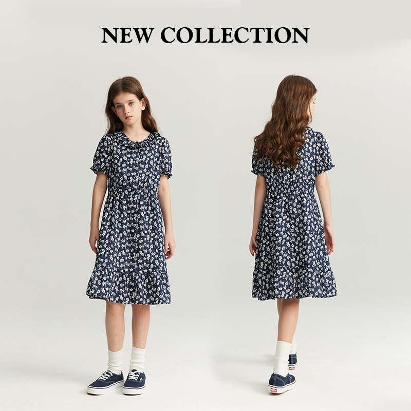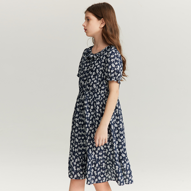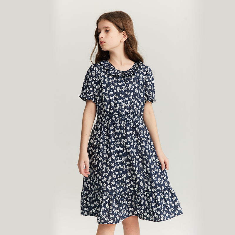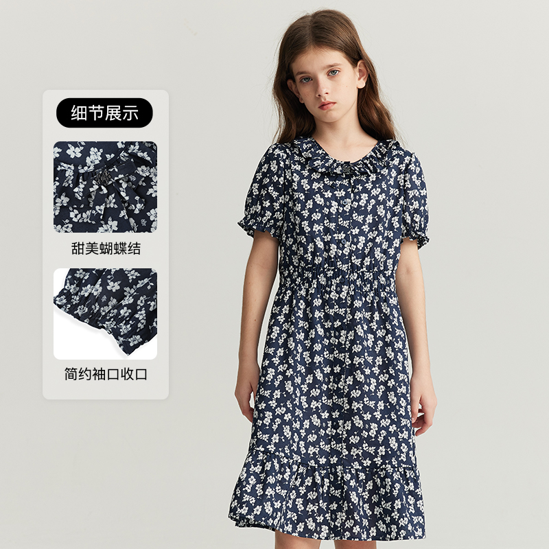 【100%莱赛尔】eland kids衣恋童装女童连衣裙夏复古甜美碎花裙子