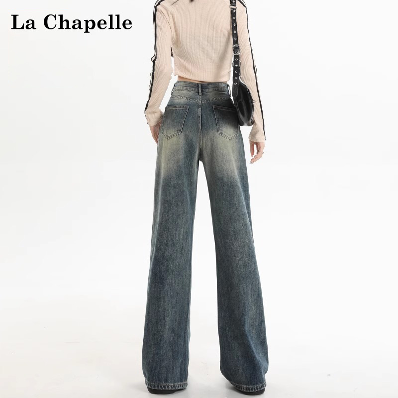 拉夏贝尔美式阔腿牛仔裤女直筒裤