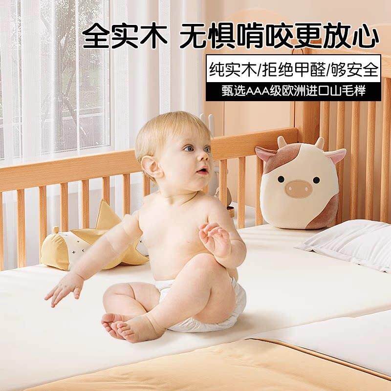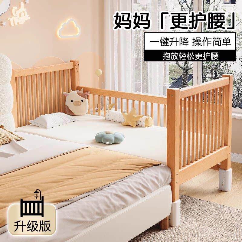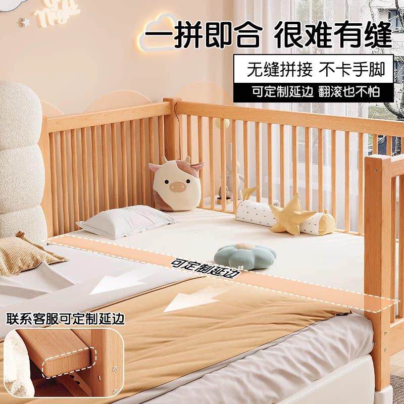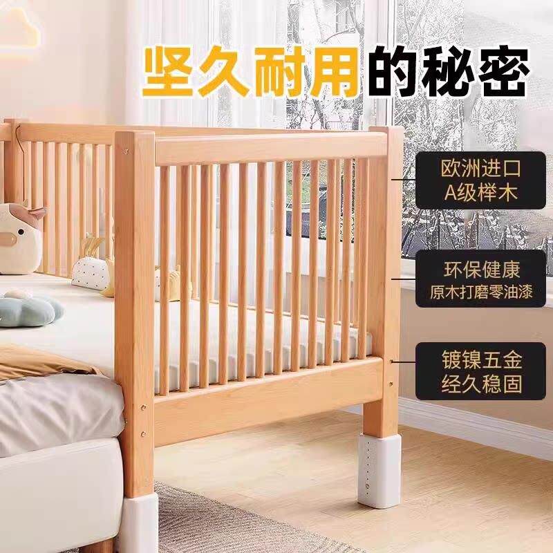 拼接床儿童床高低可调婴儿实木床边加宽大人可睡可升降围栏榉木床