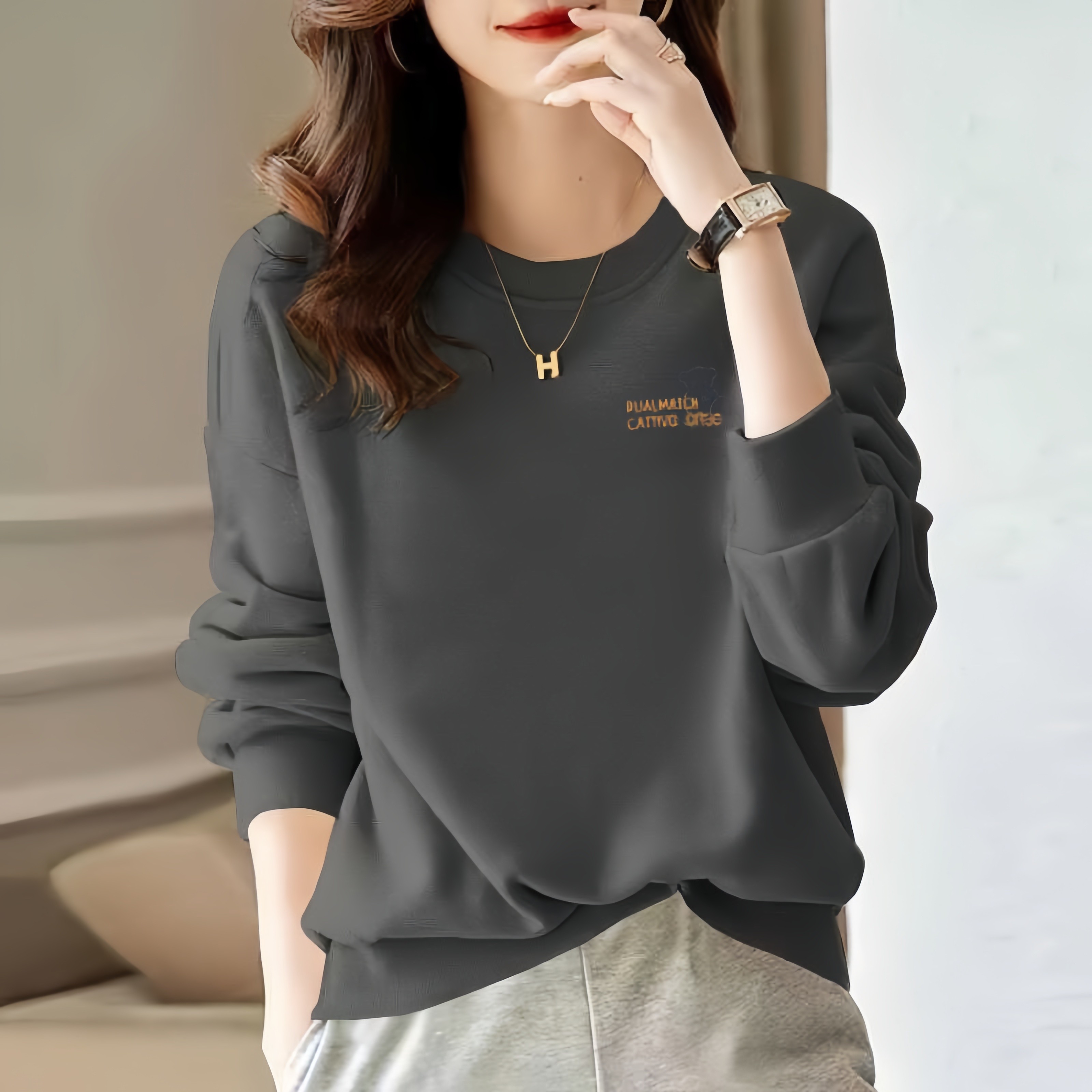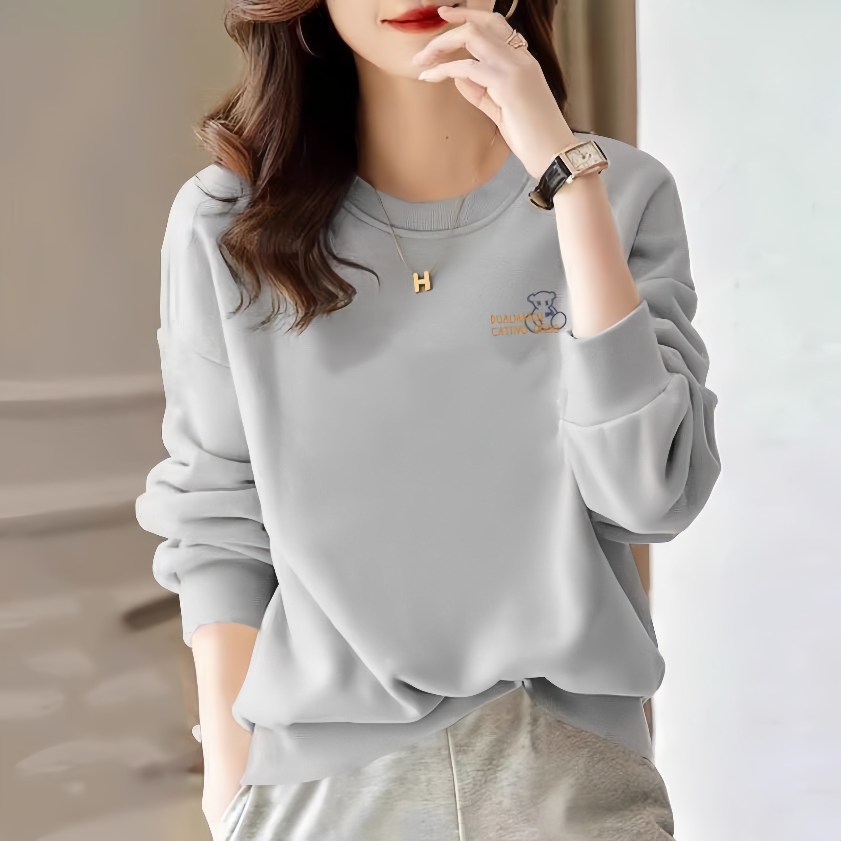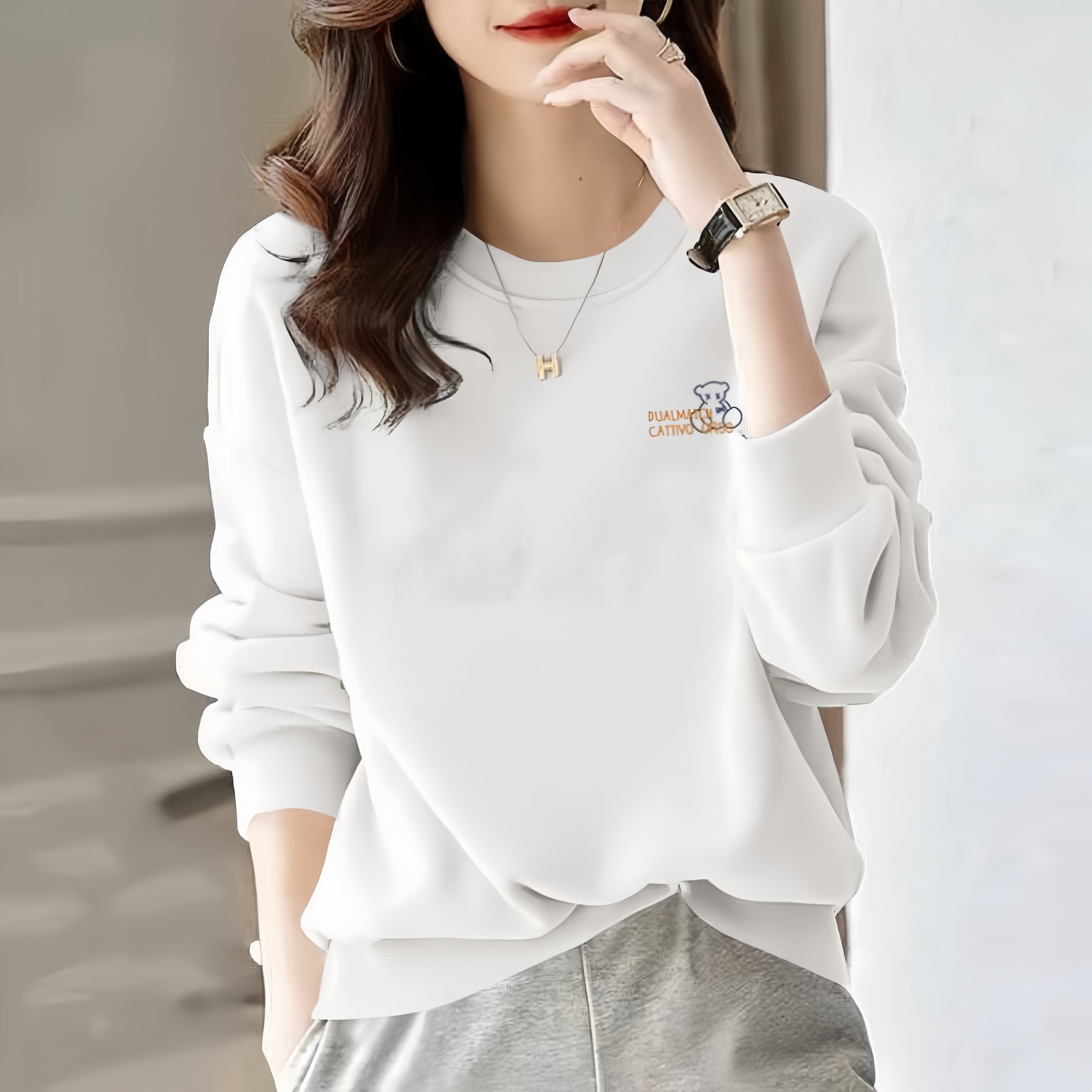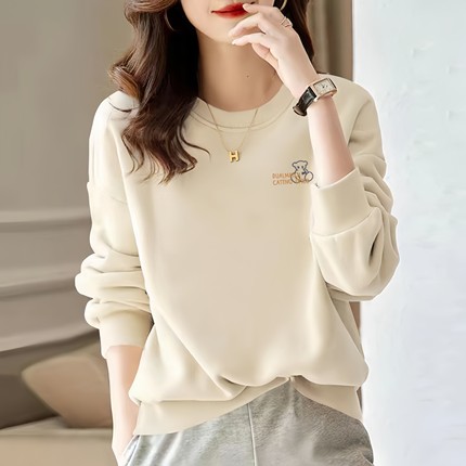 山东即墨加绒加厚圆领卫衣女秋冬设计感内搭保暖小熊字母印花上衣