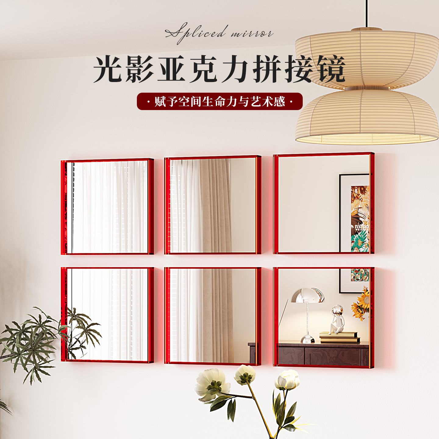 多巴胺贴墙小镜子亚克力墙面装饰镜高级感设计家用法式拼接镜定制