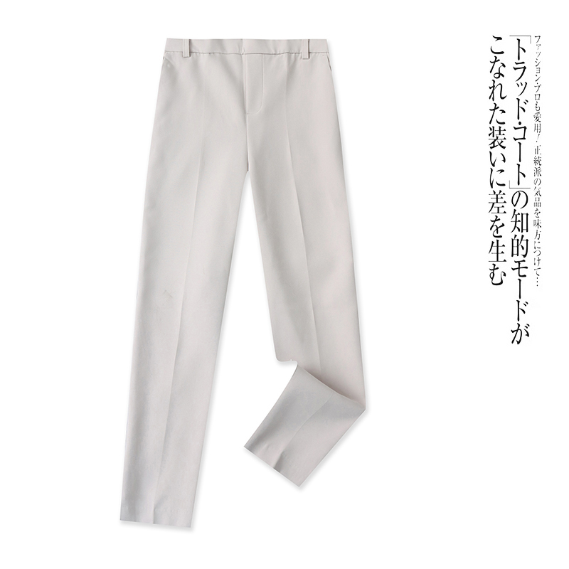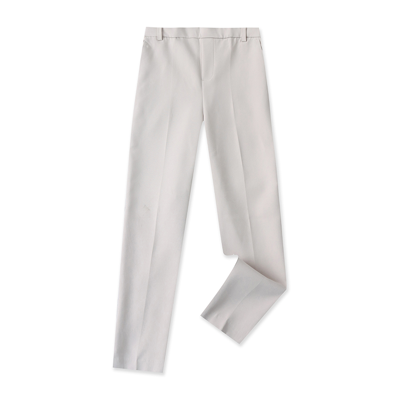 外贸欧美单时尚女裤春季新款半松紧腰宽松显瘦通勤风开叉直筒裤