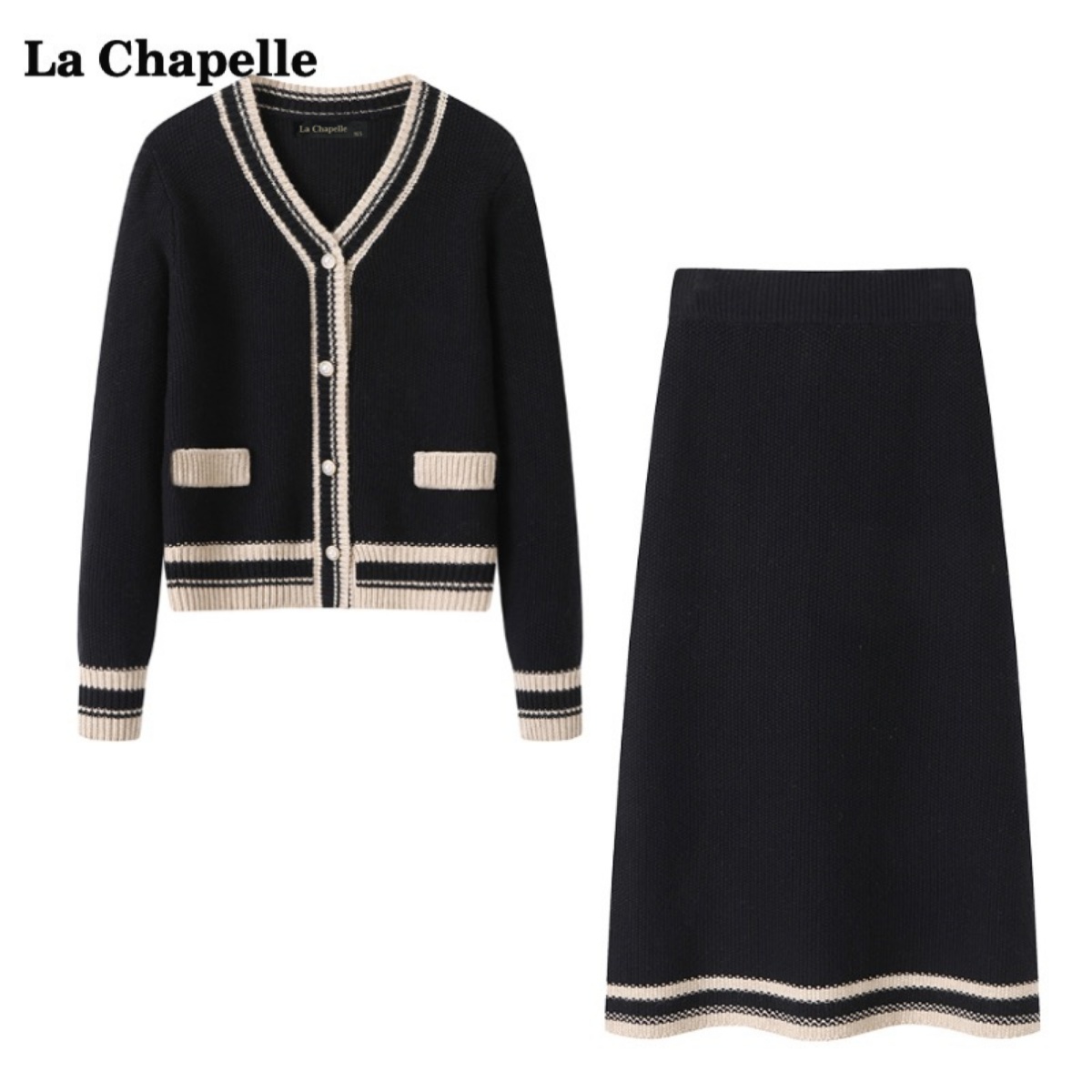 拉夏贝尔/La Chapelle小香风针织开衫半身裙两件套女秋冬时尚套装