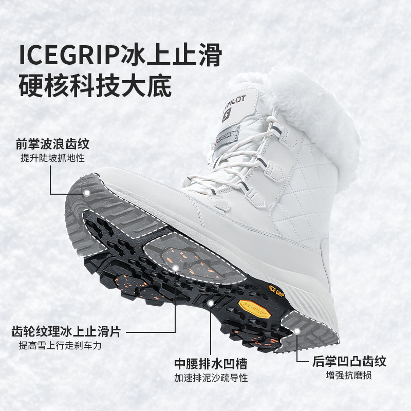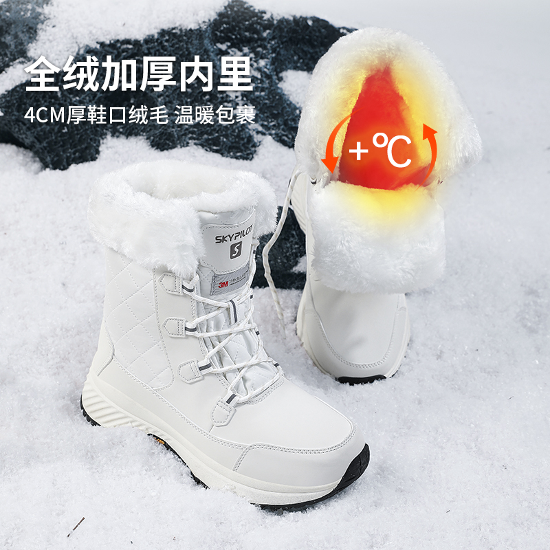 SkyPilot防水防滑户外雪地靴女冬季抗寒东北加绒厚底2025新款棉鞋