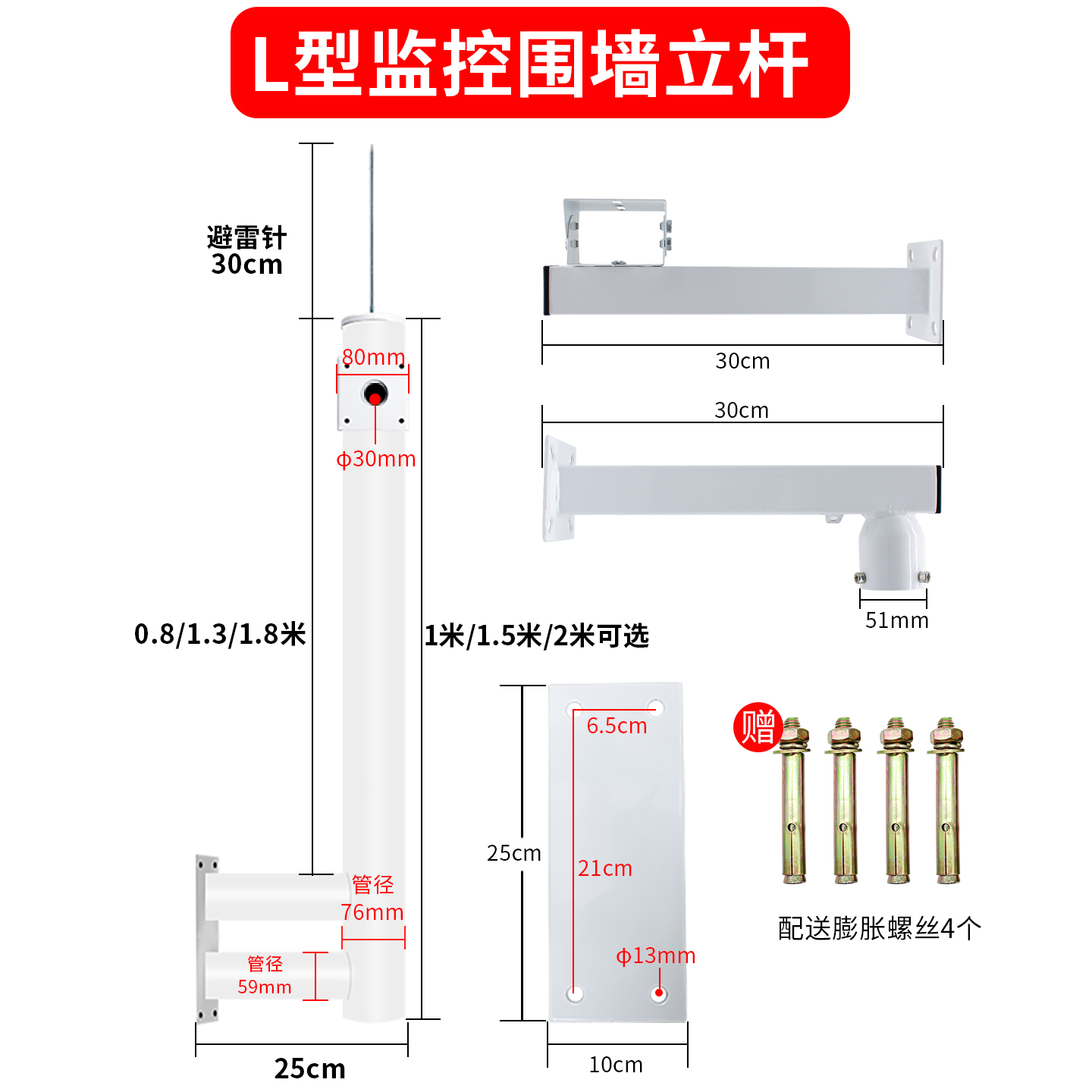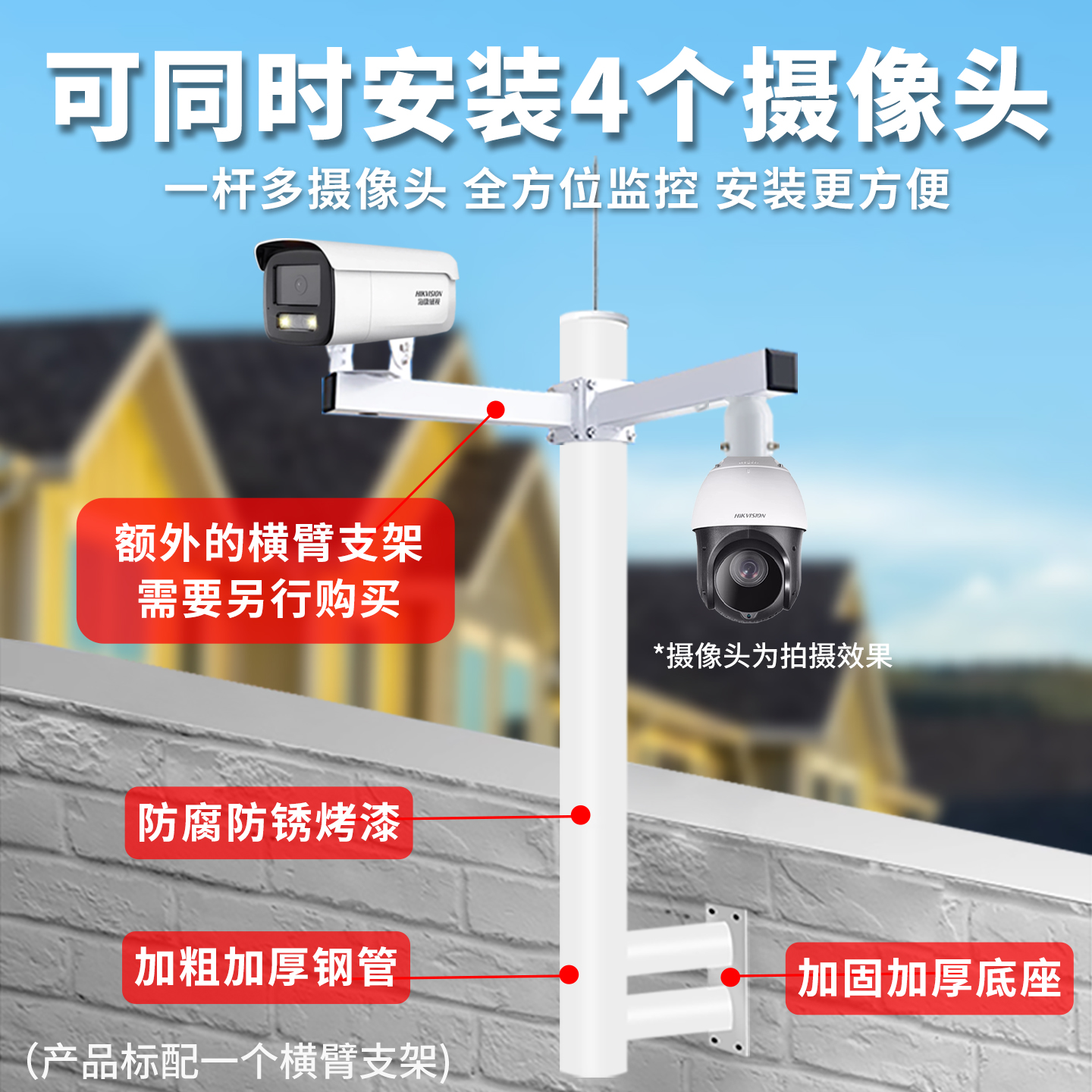 L型围墙监控支架吸墙壁装室外加长立杆高速球枪机楼顶摄像头支架
