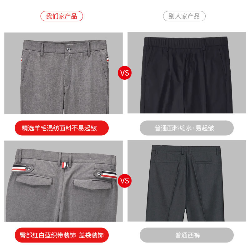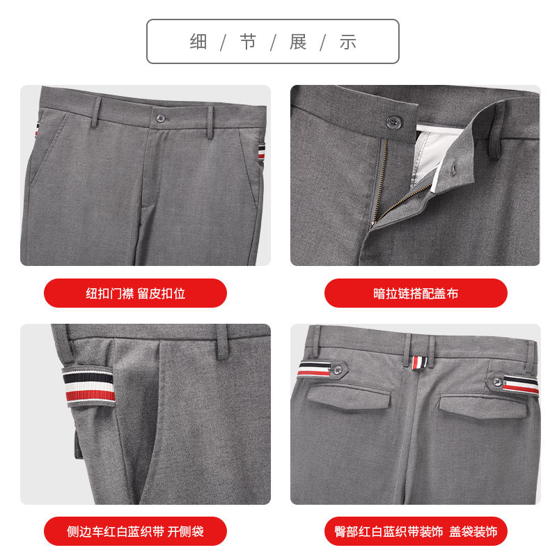 tb西裤休闲裤男女小脚九分裤百搭裤脚卷边织带商务正装羊毛裤子