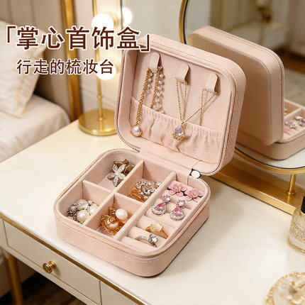 便携式首饰盒新款耳钉耳环项链戒指防尘收纳盒小型精致家居饰品盒