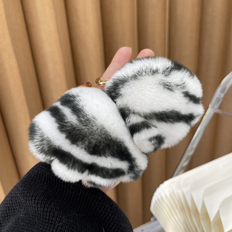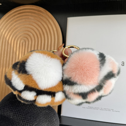 獭兔毛豹纹猫爪皮草钥匙扣毛绒球