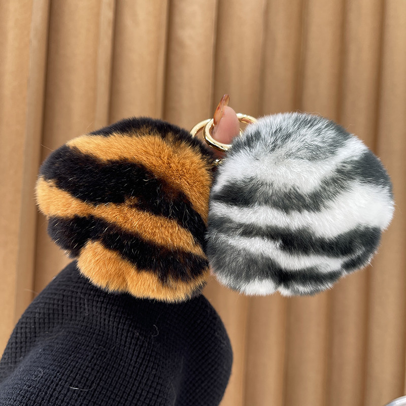 真獭兔毛豹纹小猫爪汽车钥匙扣挂件可爱毛绒球书包包挂饰生日礼物