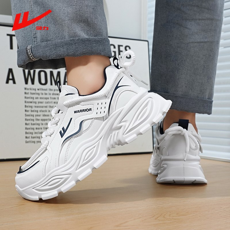 回力老爹鞋男款厚底增高皮面防水白色男鞋子轻便软底防滑运动鞋子