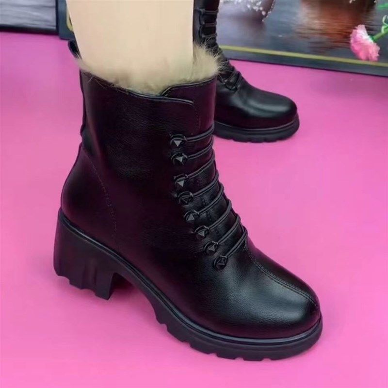 女士马丁靴软皮2024年冬加绒加厚英伦风短靴子百搭厚底棉鞋雪地靴