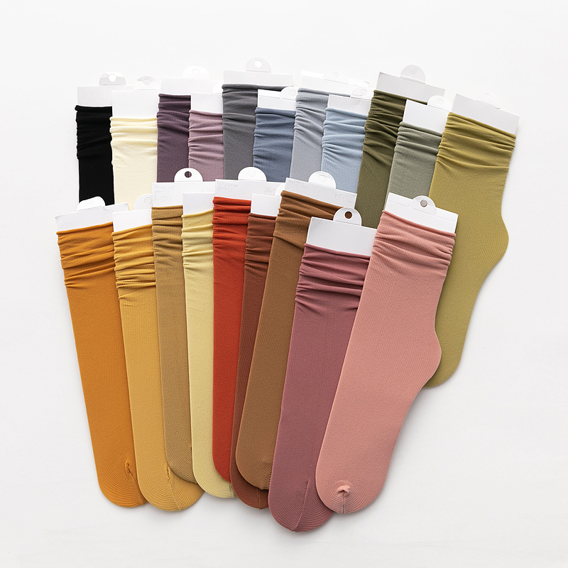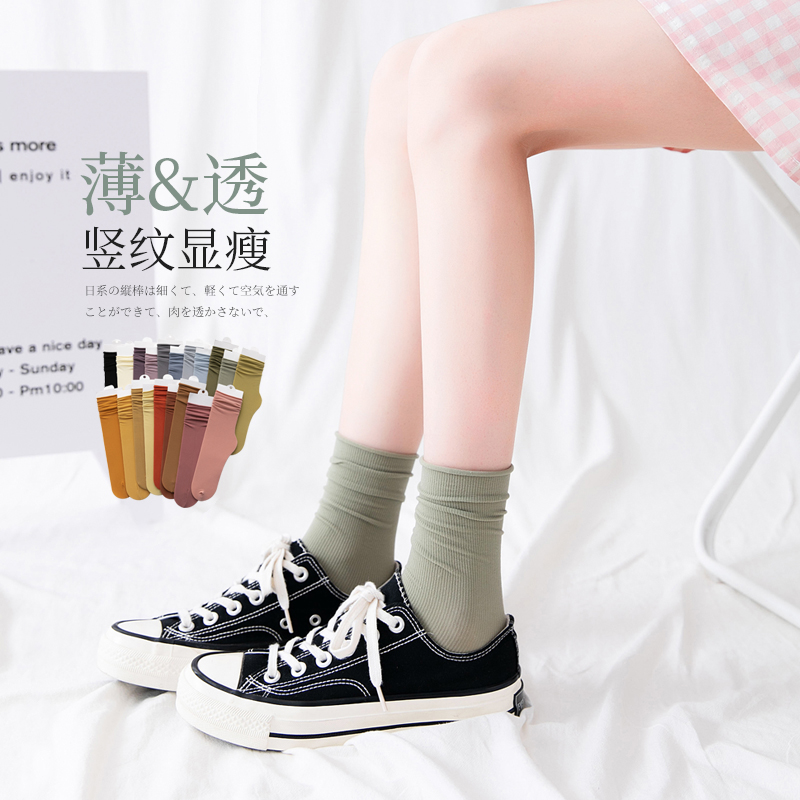 袜子女夏中筒袜夏季薄款堆堆袜冰丝袜白色短袜小腿袜黑色冰冰袜