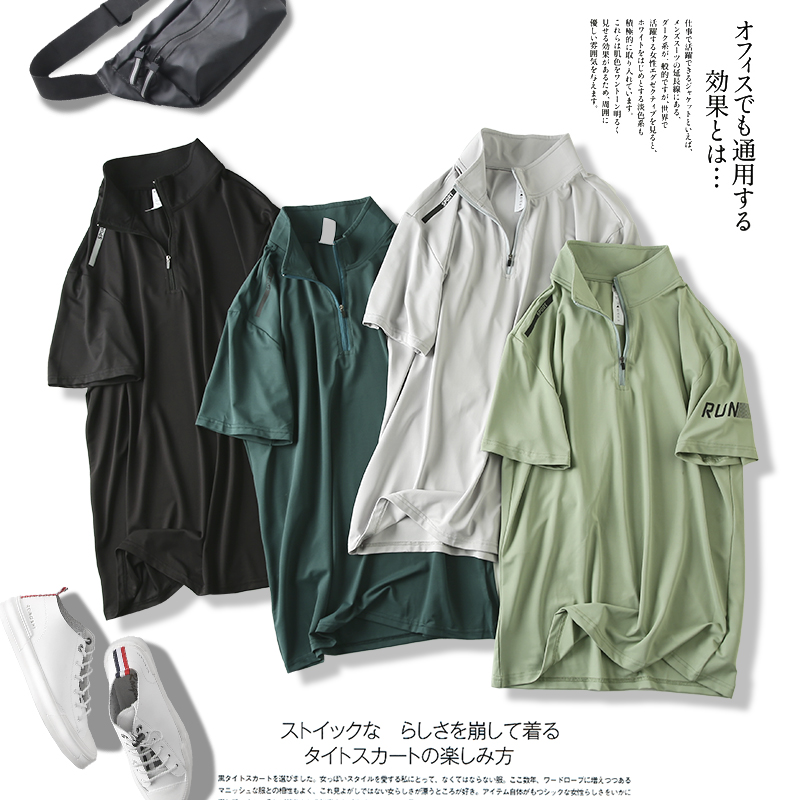 户外RUN系列!半拉链立领设计!男士轻薄速干透气运动跑步短袖T恤