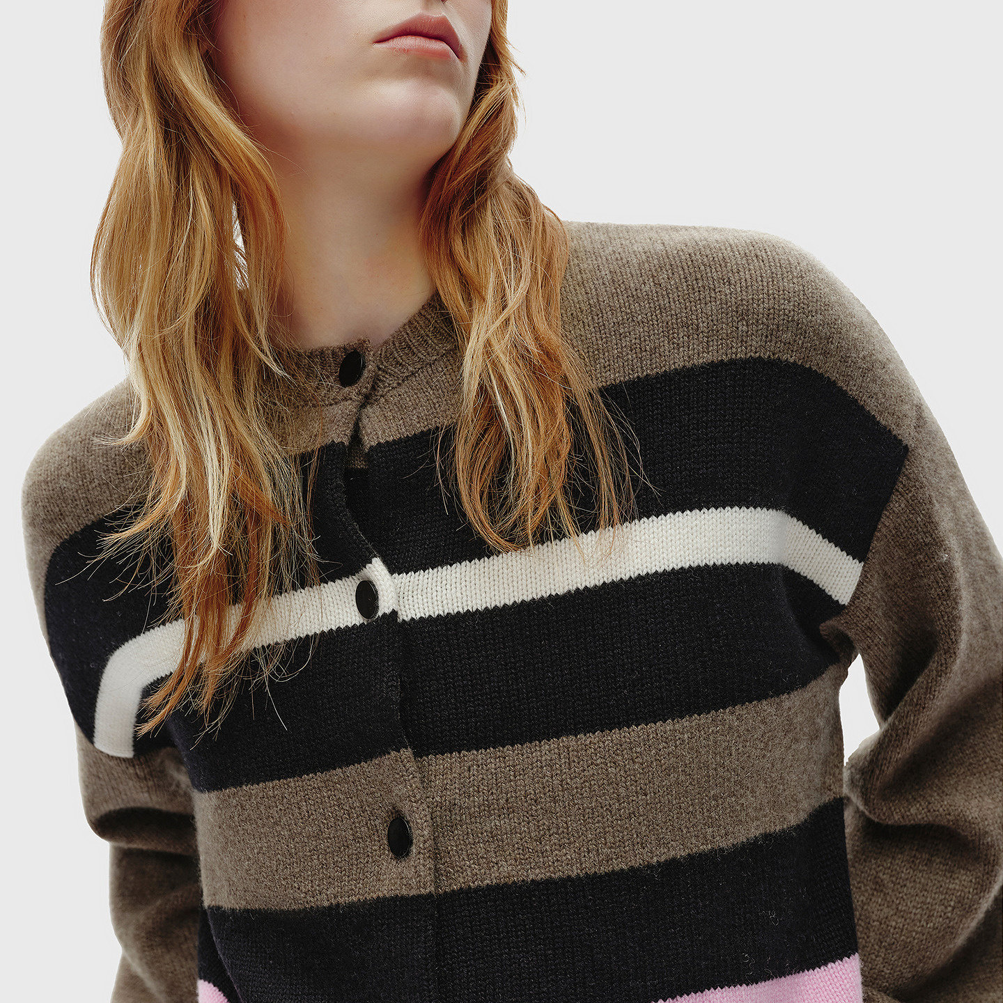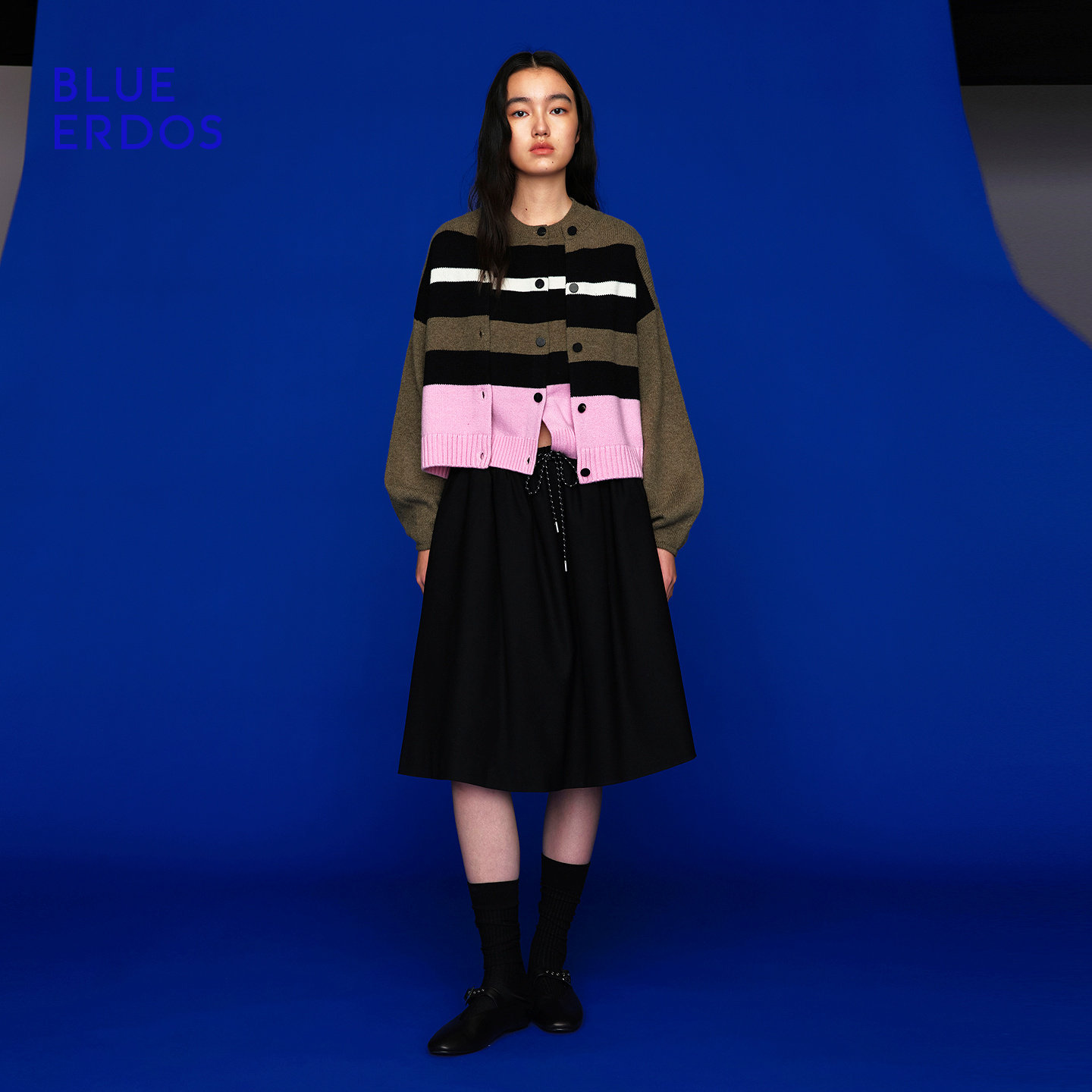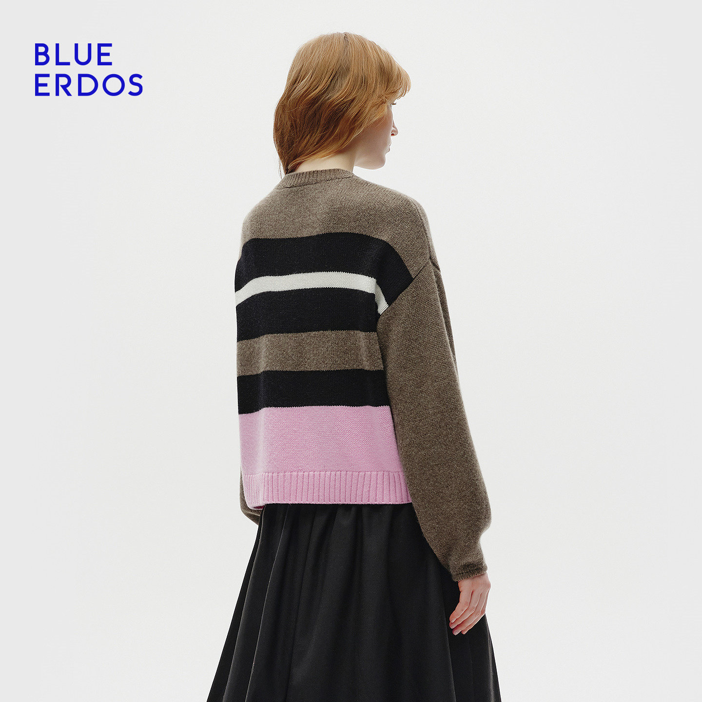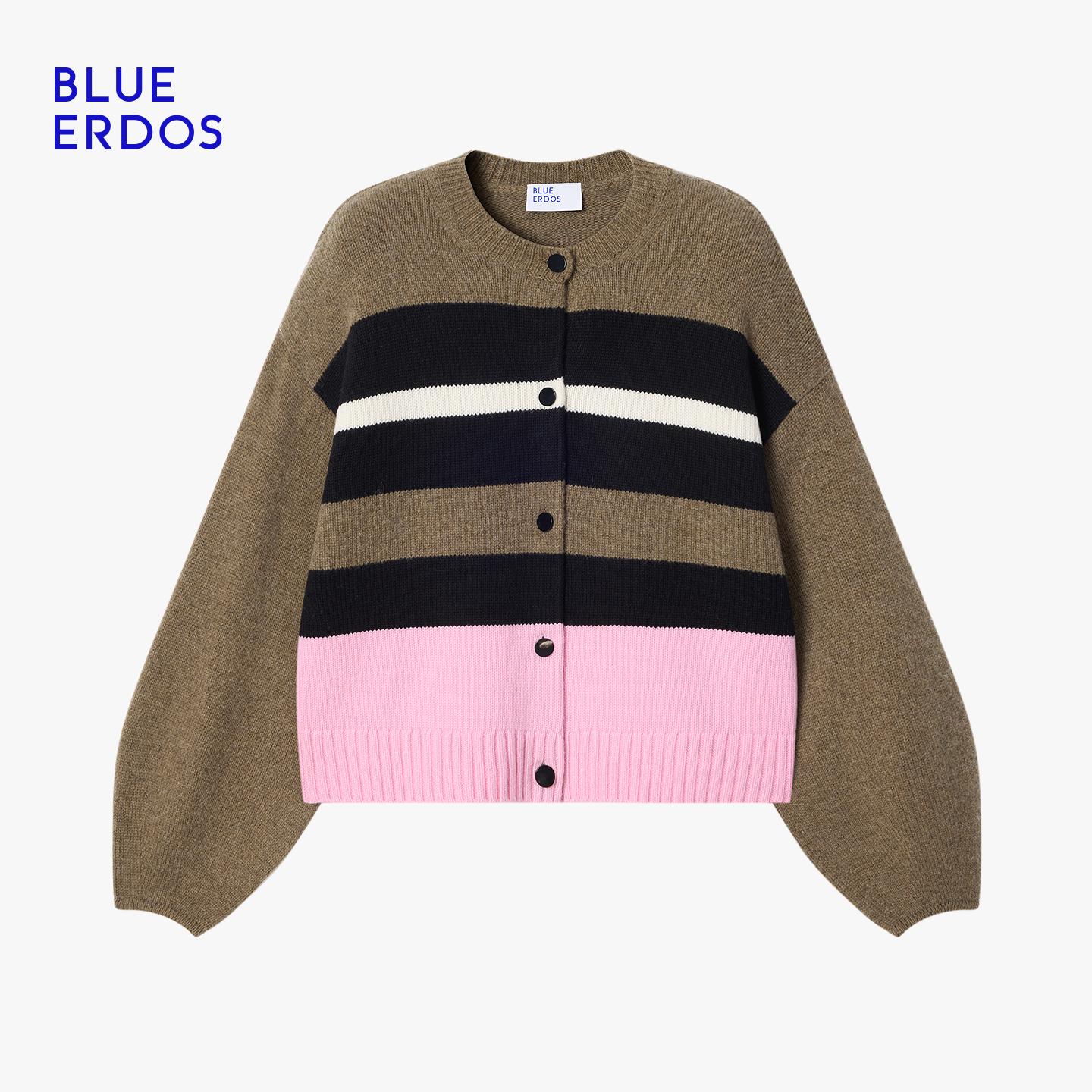 BLUE ERDOS冬季新品复古学院风羊毛羊绒撞色圆领灯笼袖针织开衫