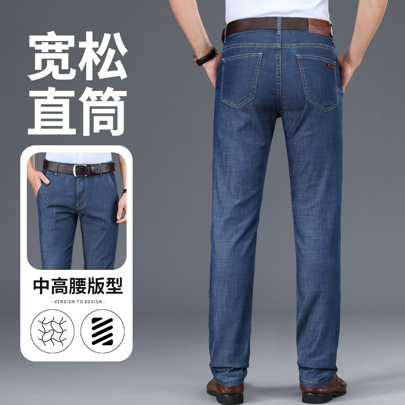罗蒙牛仔裤男夏季薄款宽松直筒冰丝超薄休闲长裤子男士2023年新款