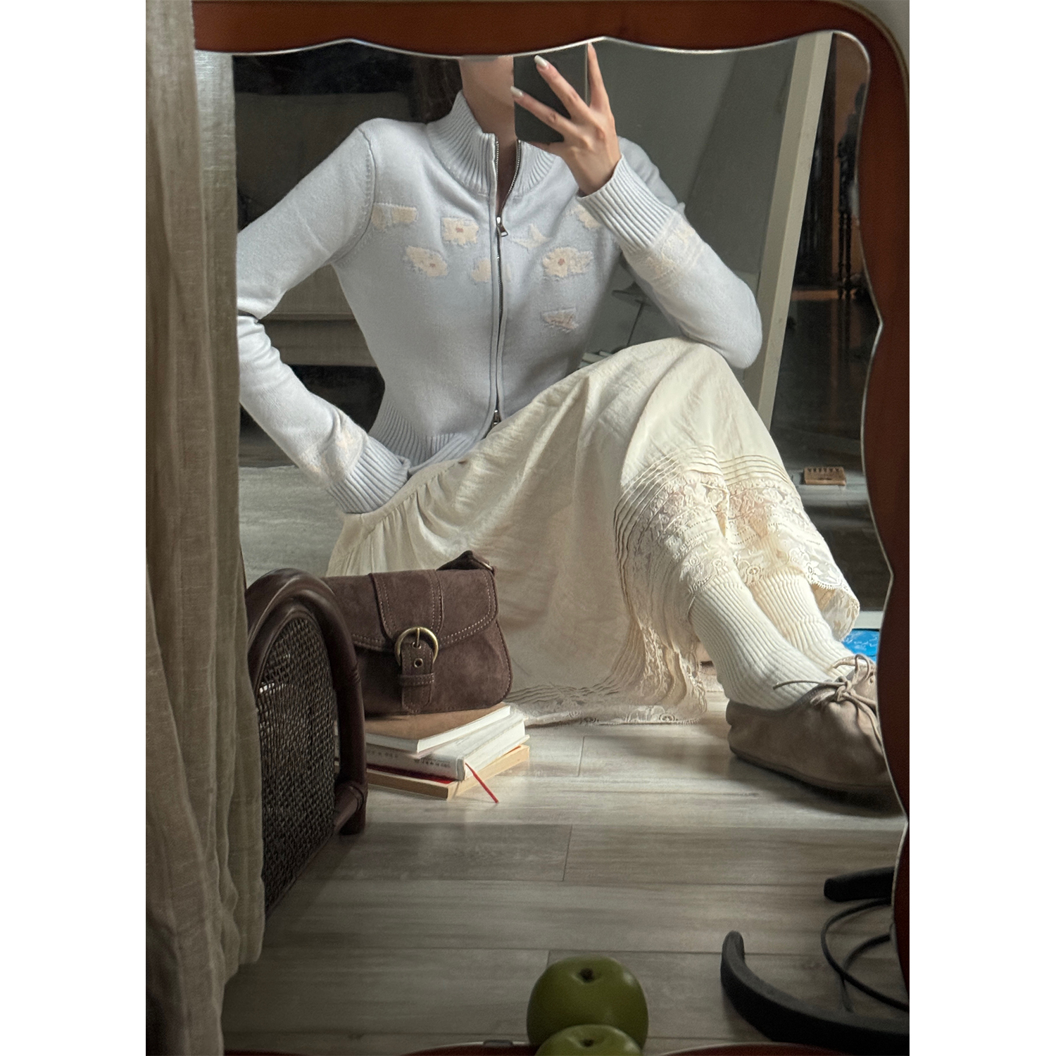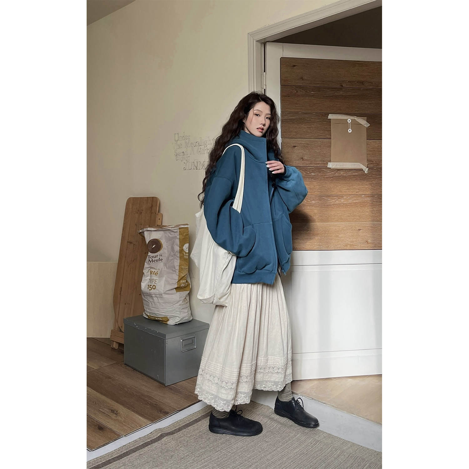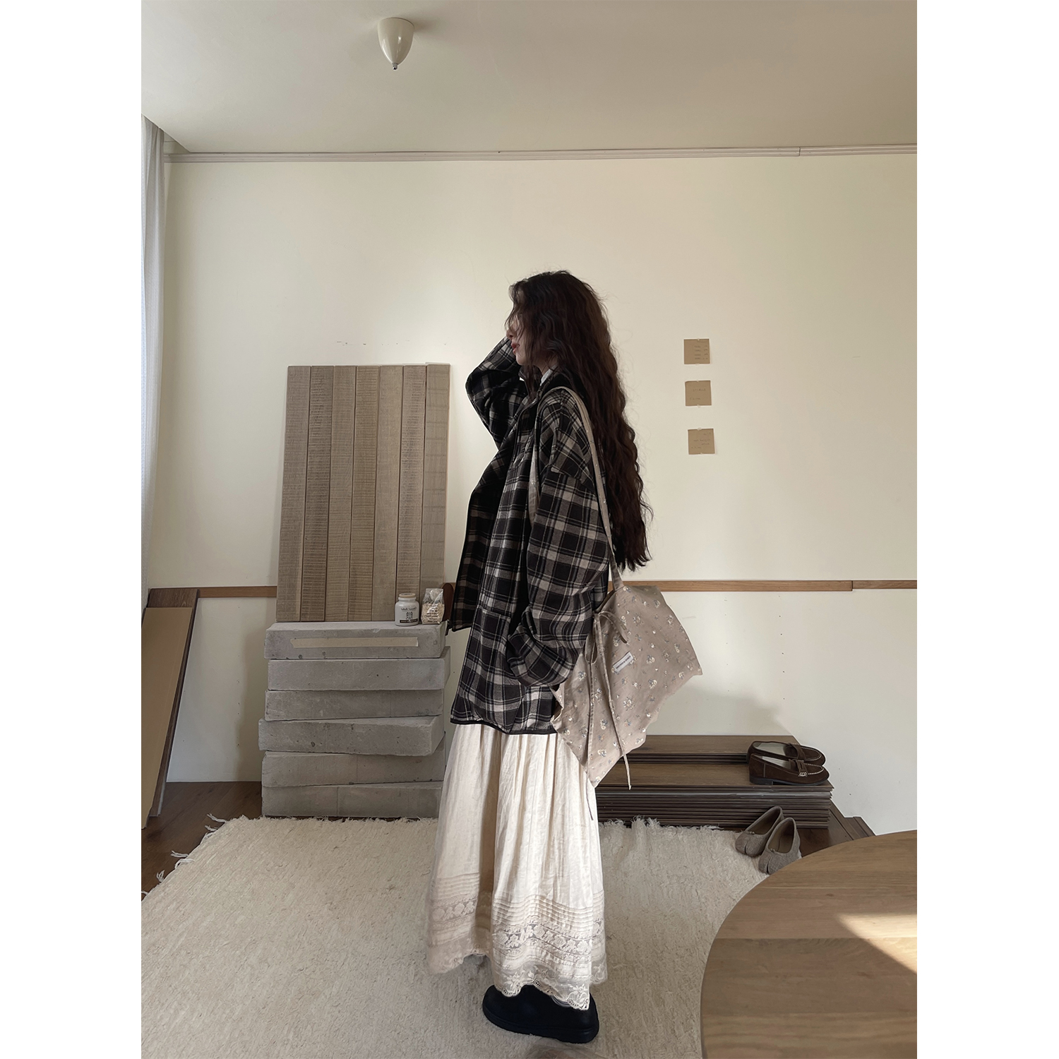 JMwomen森系杏色棉麻蕾丝半身裙女春秋2025复古宽松a字中长款长裙