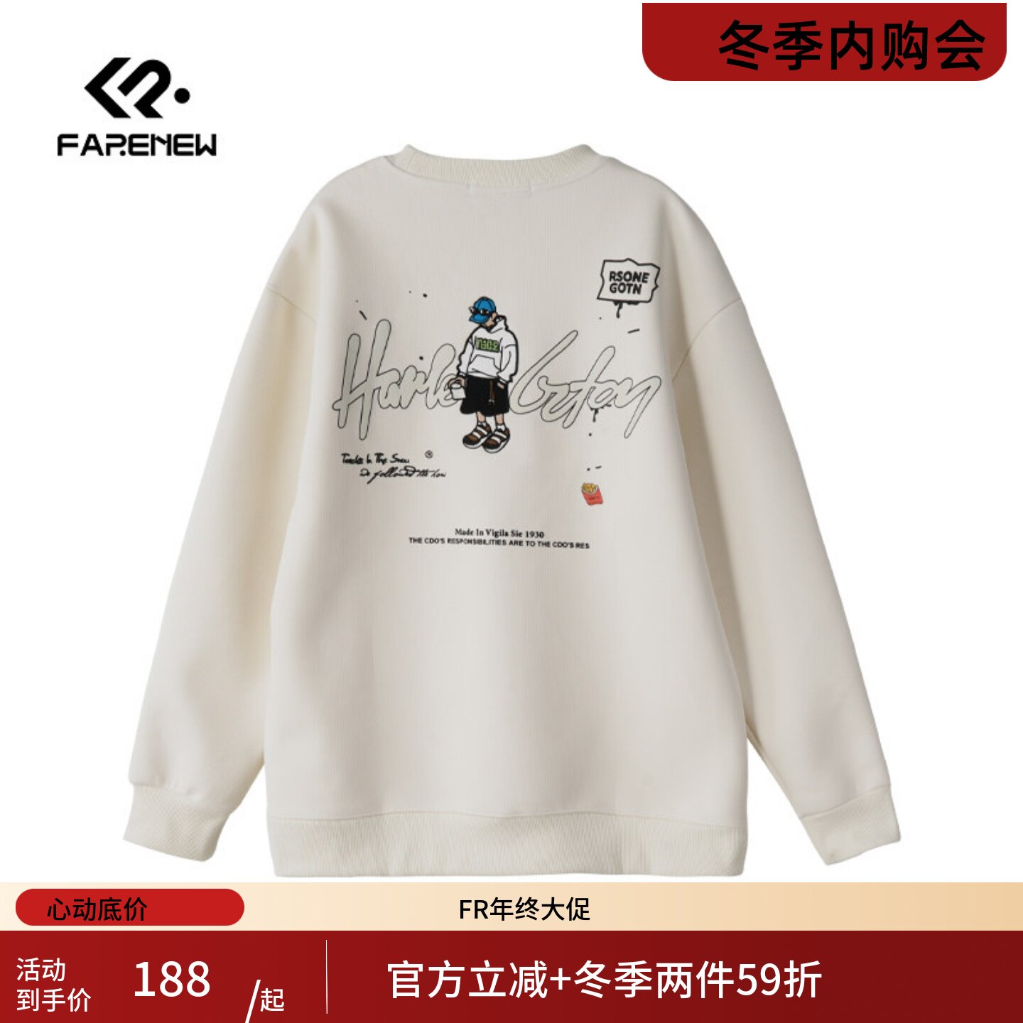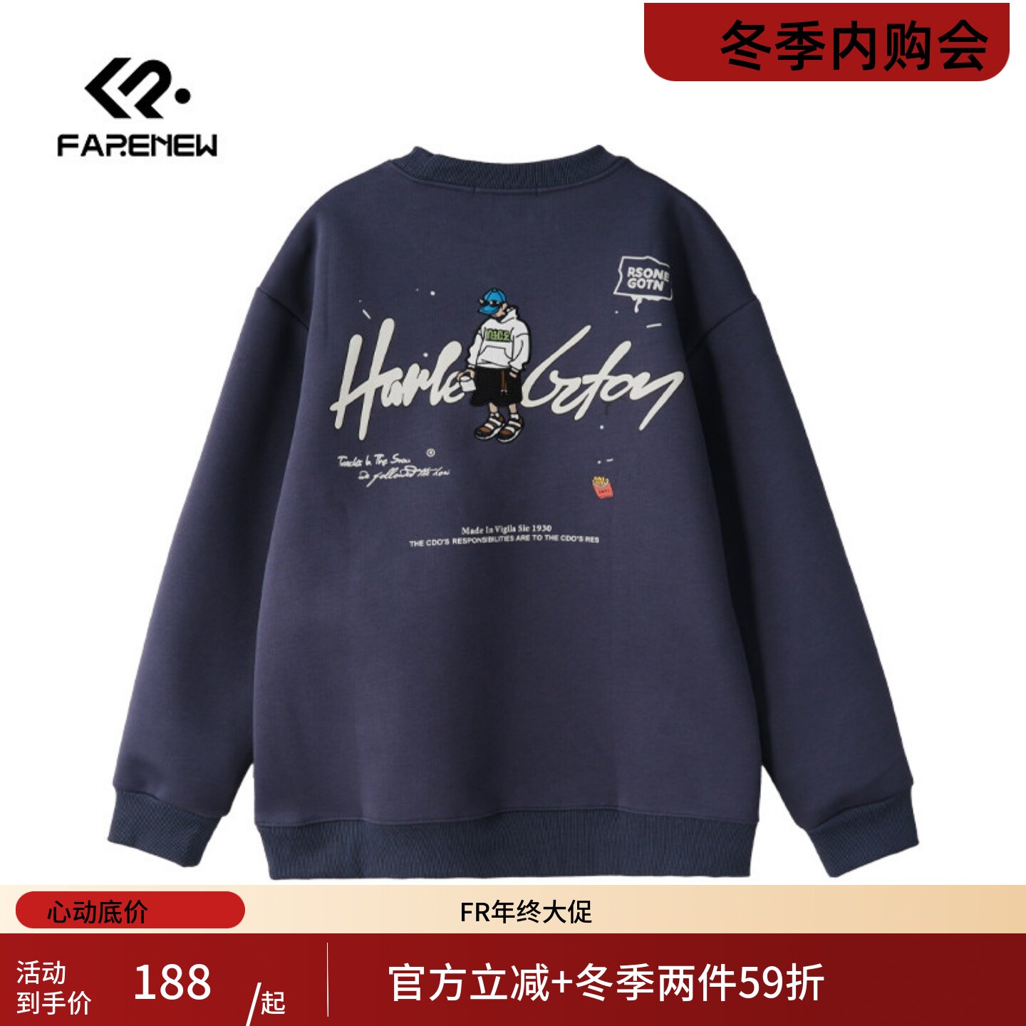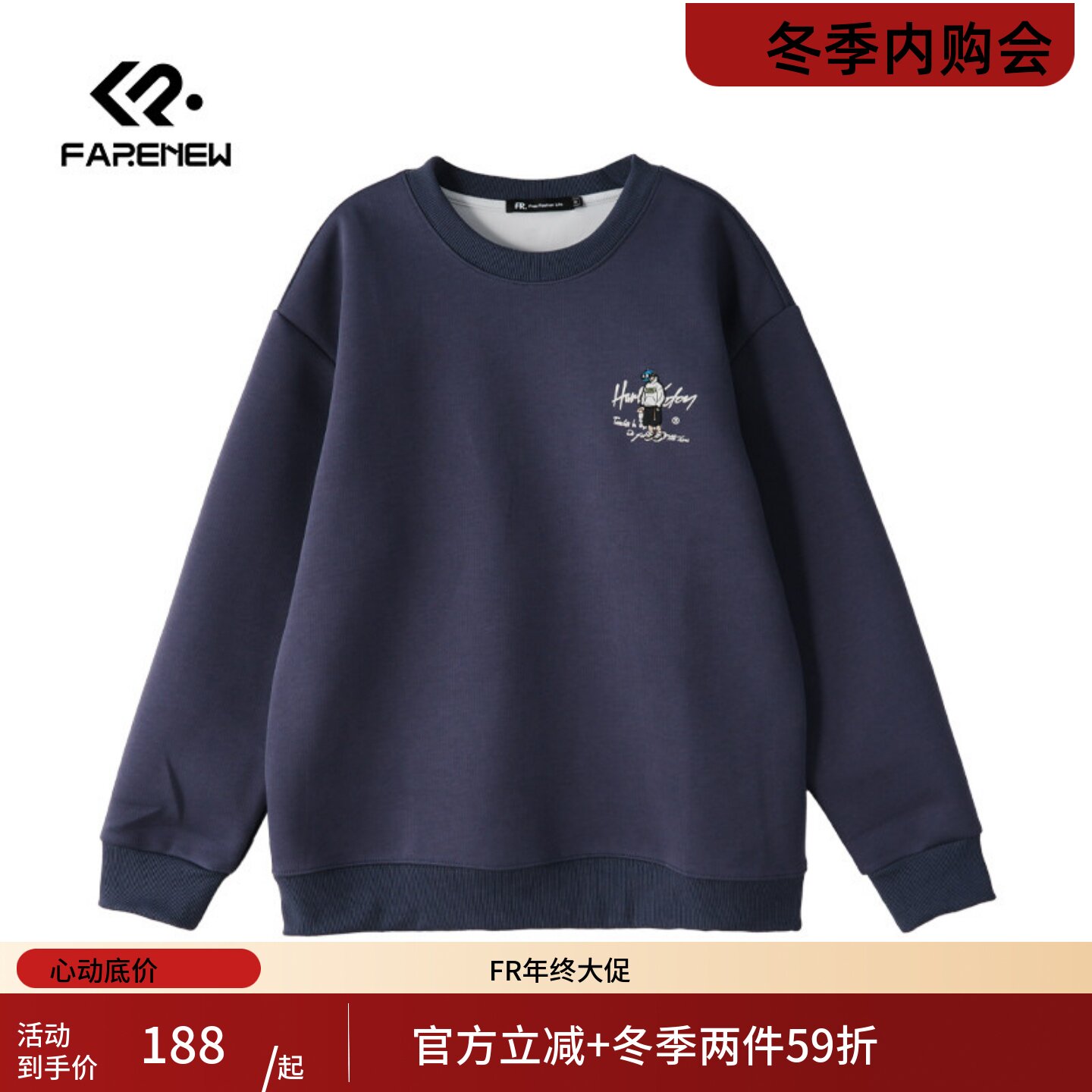 凡人优品男士休闲卫衣长袖上衣T恤冬季内搭套头圆领W088