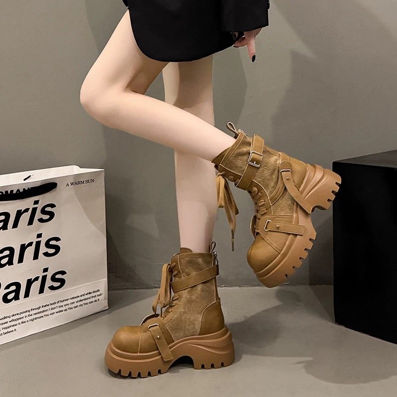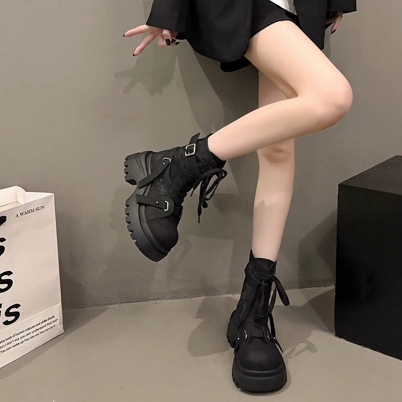 2026春季新款厚底小个子增高马丁靴女英伦风短筒机车靴帅酷炸街靴