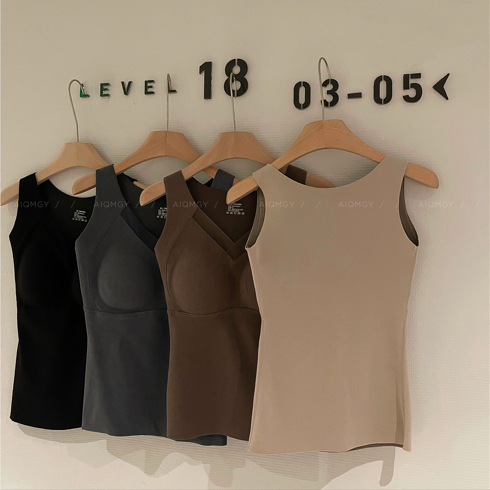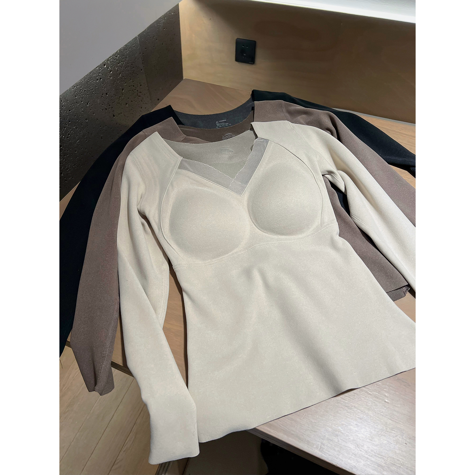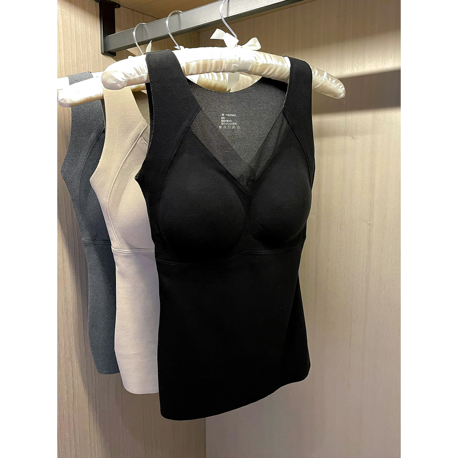爱情魔鬼鱼 新款德绒保暖背心女士V领背心免穿文胸一体杯打底上衣