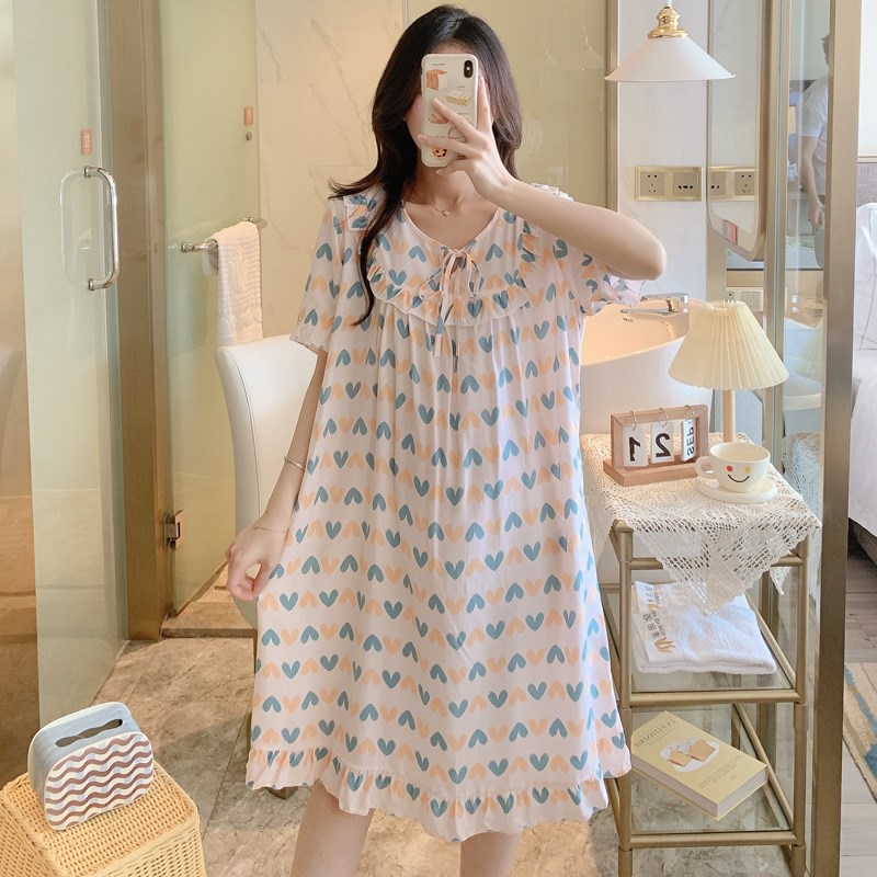 夏天棉绸睡裙夏季女款2024新款绵绸人造棉孕妇大码U连衣裙睡衣夏