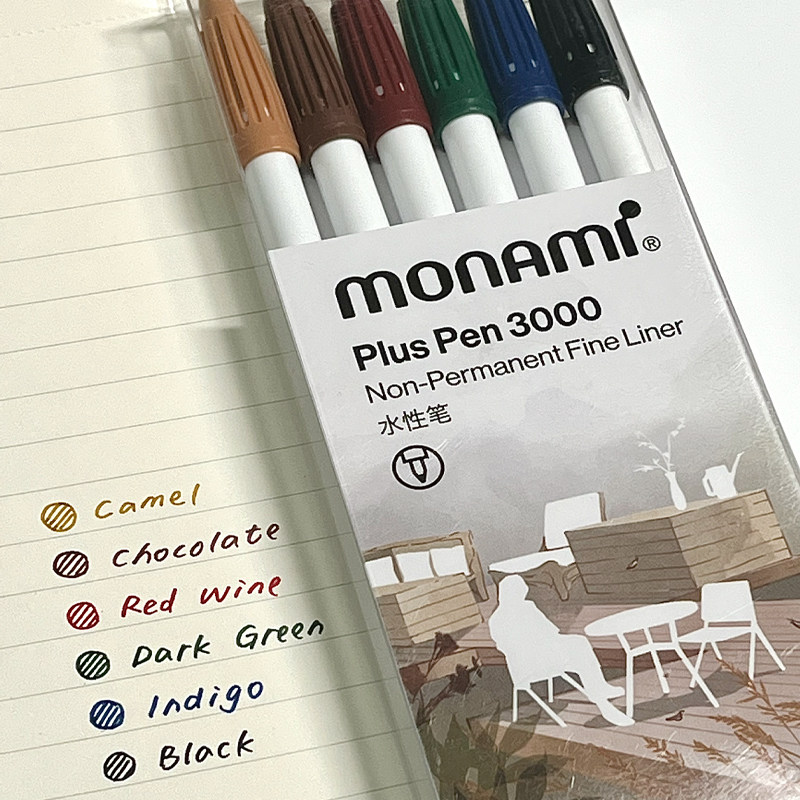 慕那美旗舰店Monami新品3000学生手账中性勾线笔小学生慕娜美水彩笔套装纤维笔马克笔硬头涂鸦彩笔6色套装