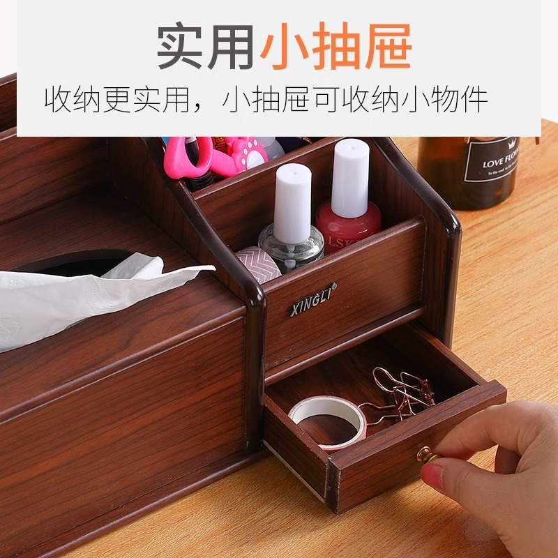 办公室桌面木质多功能笔筒收纳盒高档笔架客厅纸巾盒遥控器化妆品