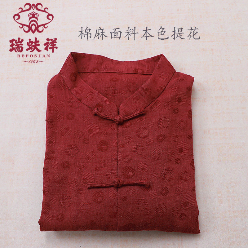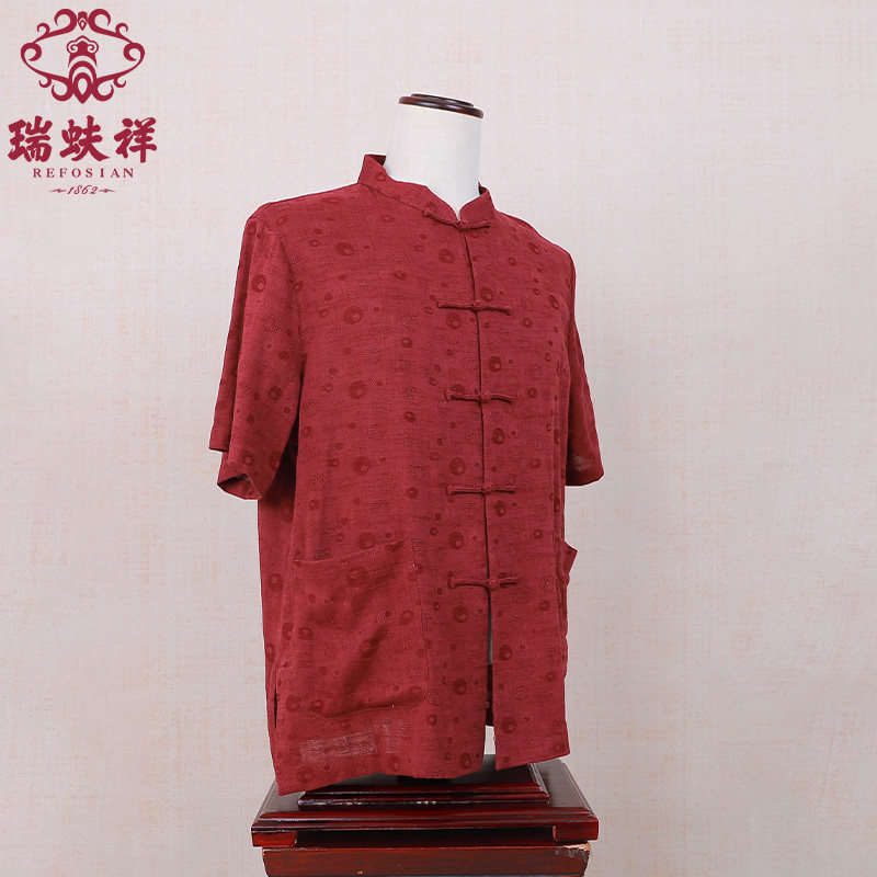 瑞蚨祥中国风唐装男夏棉麻透气休闲半袖上衣中老年爸爸装短袖禅服