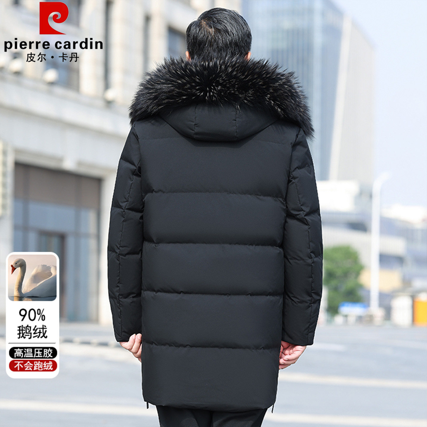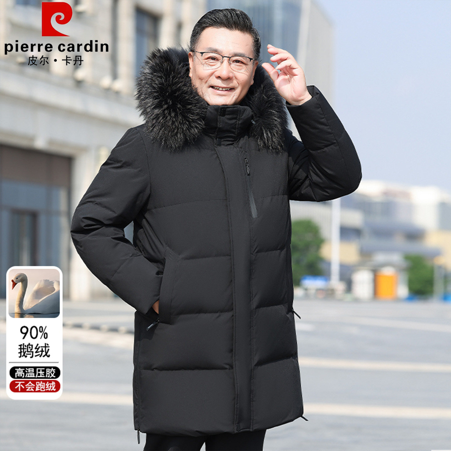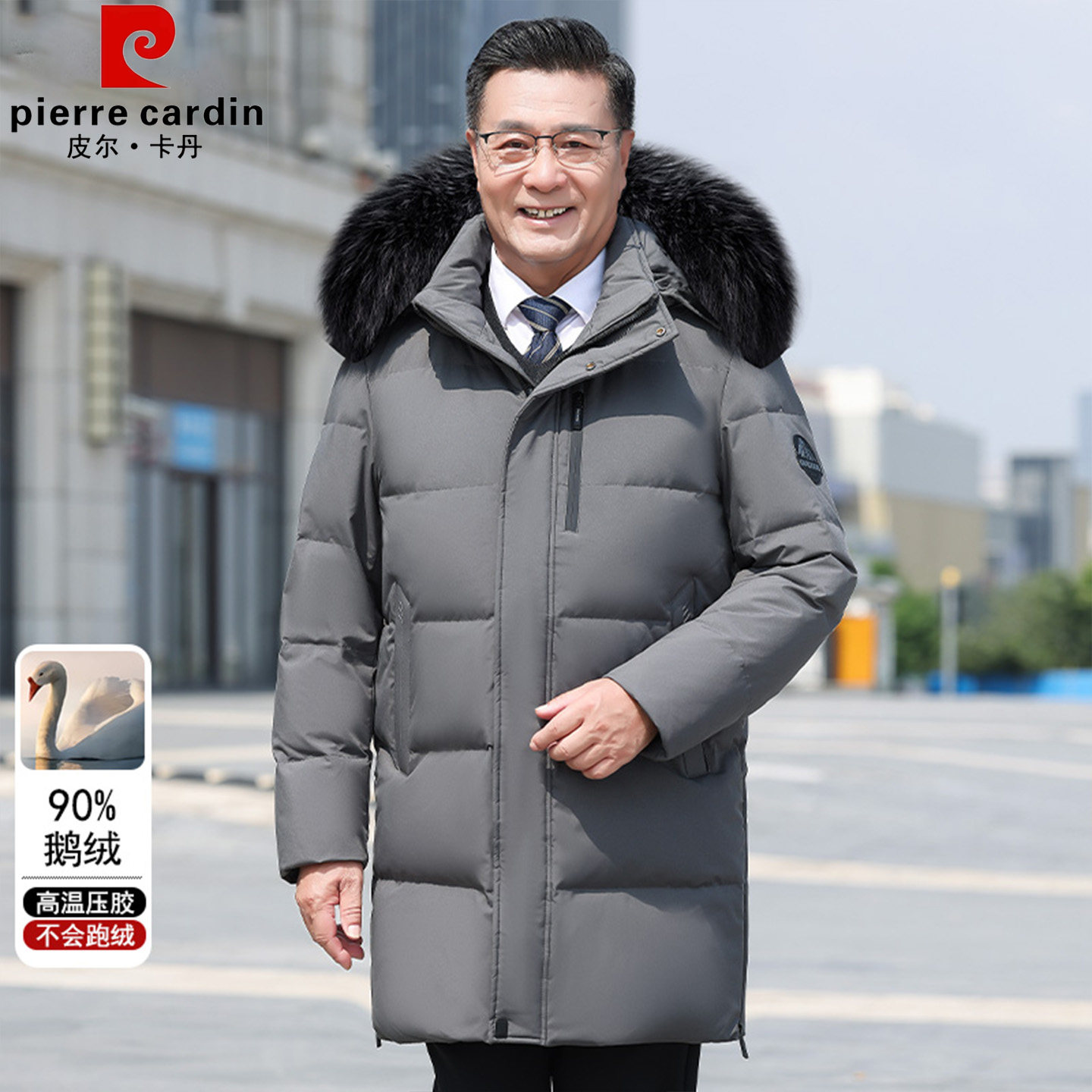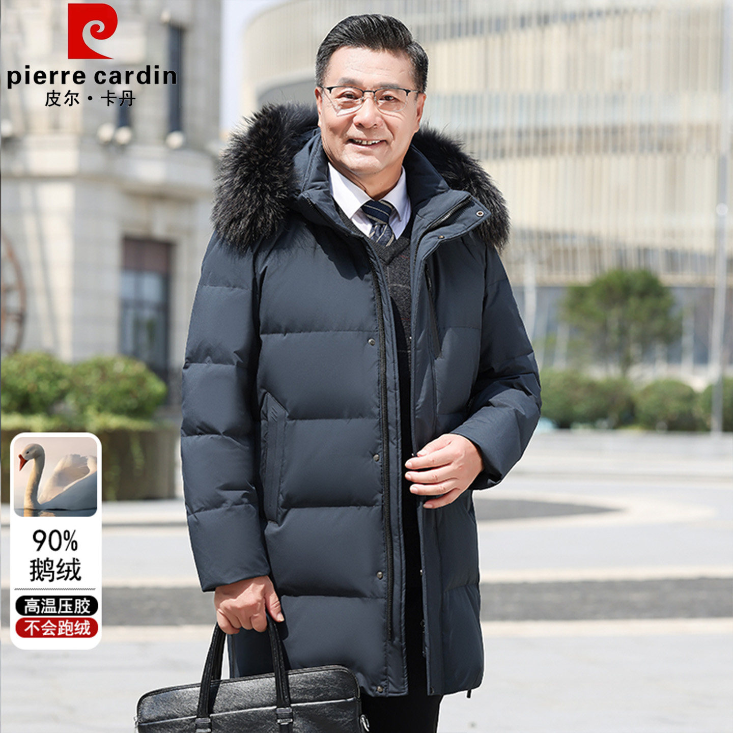 皮尔卡丹新款鹅绒服男中老年加厚中长款过膝羽绒服爸爸冬装防寒服