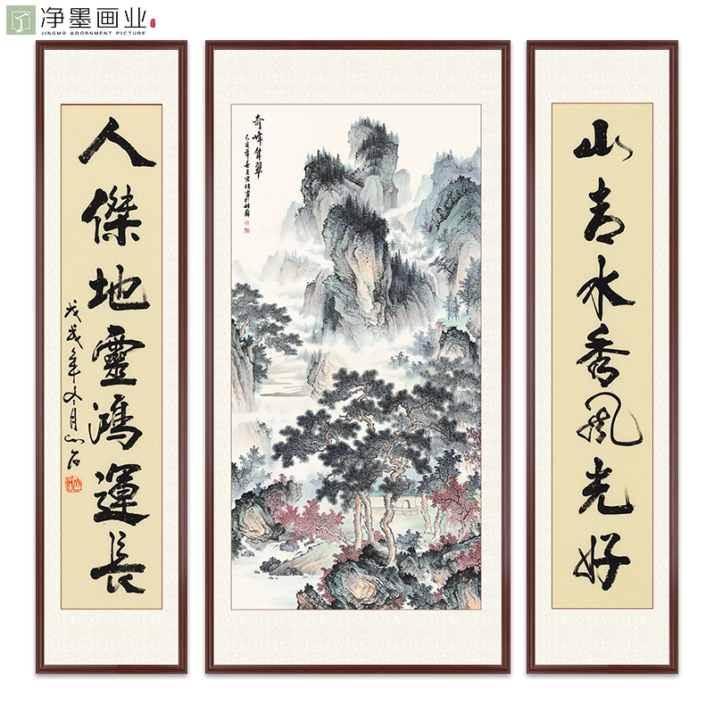 中堂画客厅挂画农村堂屋大堂大气镇宅对联竖式风水靠山国画山水画