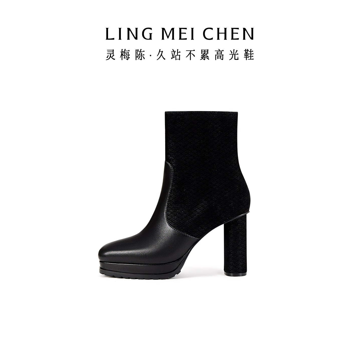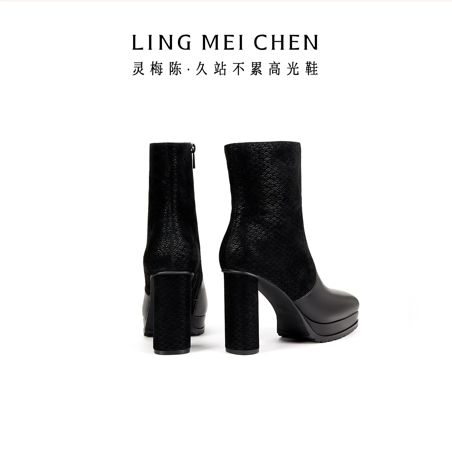 灵梅陈防水台粗跟厚底高跟鞋靴子