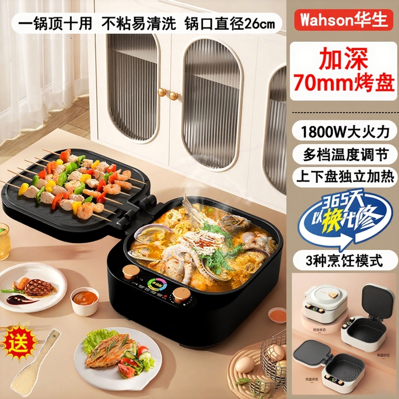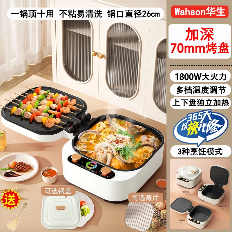 电饼铛家用双面加热炖煮涮火锅电饼档侧翻盖新款可调温多功能加大