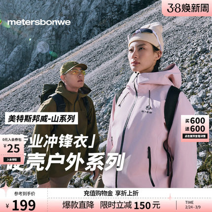 美特斯邦威春户外三防硬壳登山服夹克防水防风爬山冲锋衣