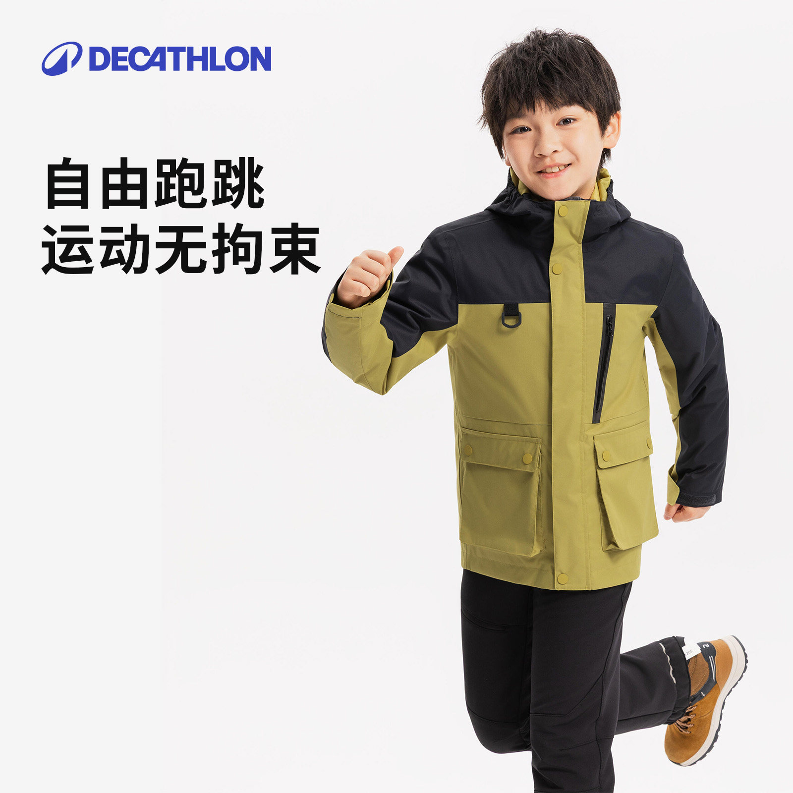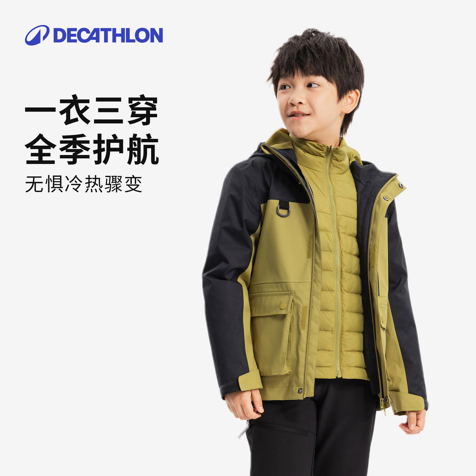 迪卡侬儿童三合一冲锋衣羽绒服男女秋冬保暖防风防水加厚外套KIDS