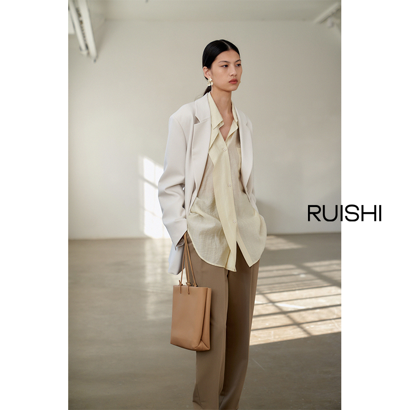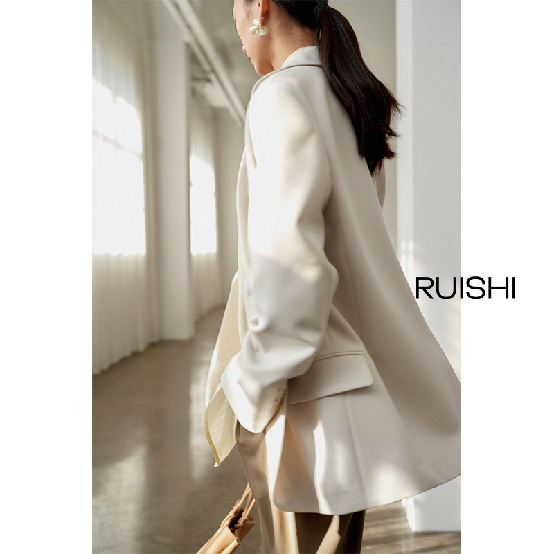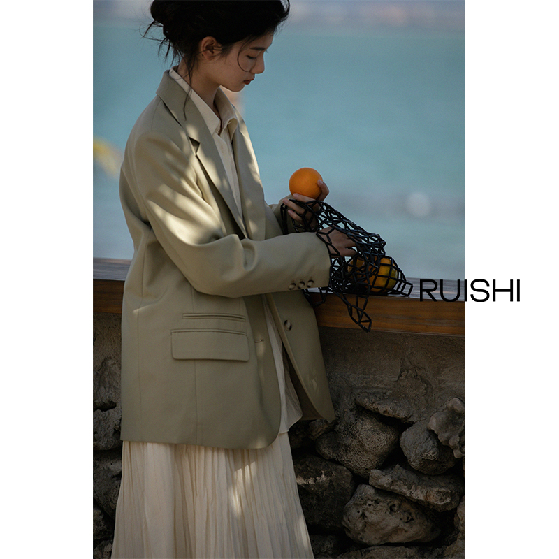 芮时精纺羊毛气质盐系色西装外套