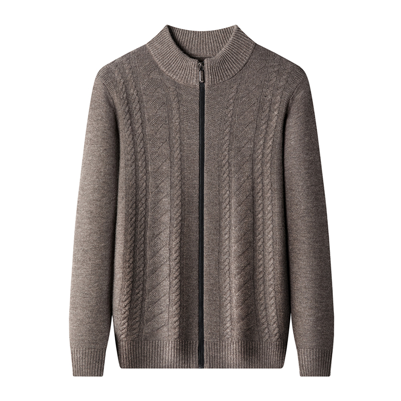 恒源祥男士纯羊毛开衫休闲立领麻花修身百搭针织衫毛衣外套春季
