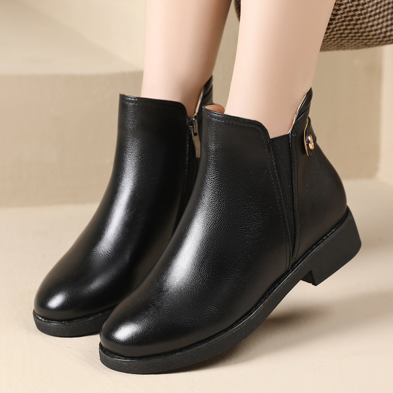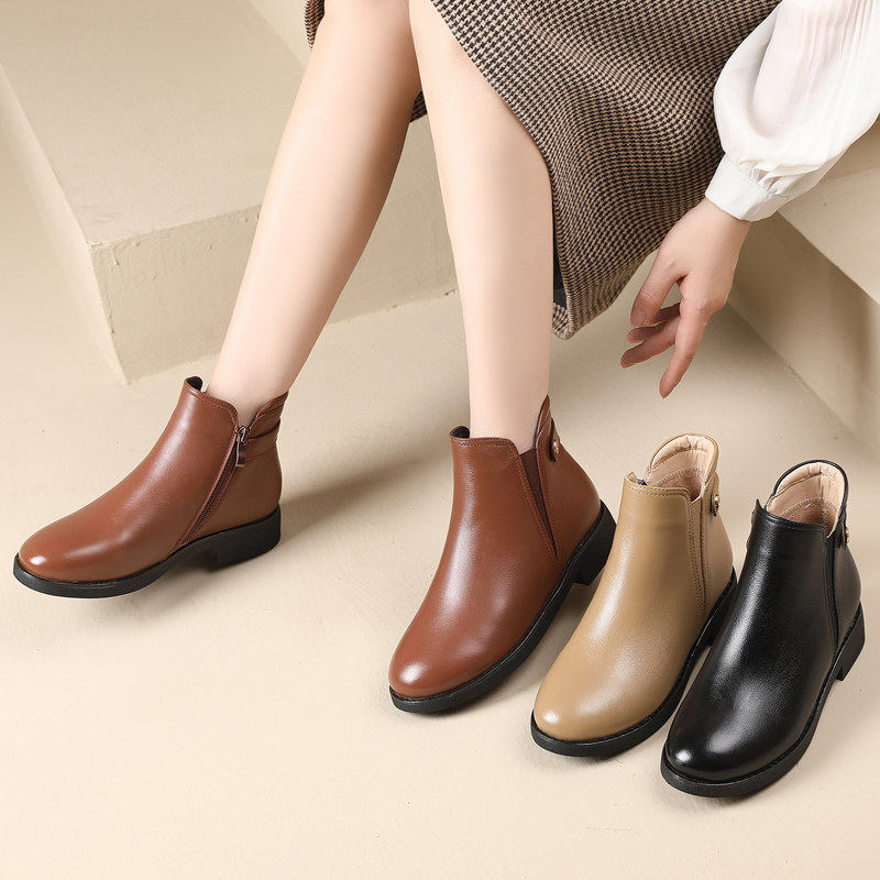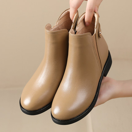 全真皮平底马丁靴秋冬英伦风女靴大码女鞋软底平跟加绒切尔西短靴