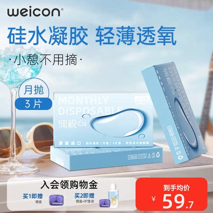 卫康润视O2月抛3片硅水凝胶隐形眼镜近视透明片舒适正品旗舰店
