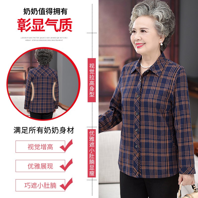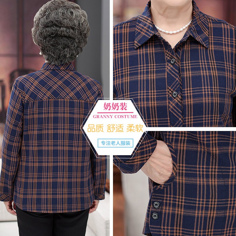奶奶春秋装纯棉长袖衬衫中老年人女老人老太太妈妈春季全棉衬衣服