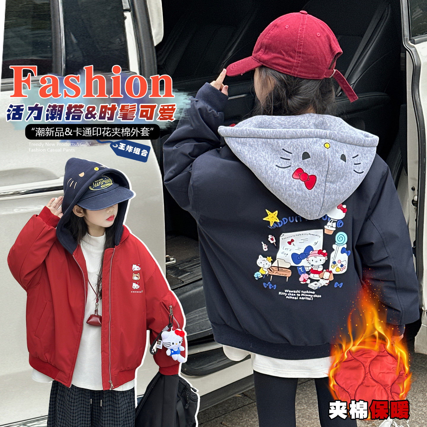 女童外套深秋2025新款中大童夹棉洋气夹克儿童加厚初冬上衣冬棉衣