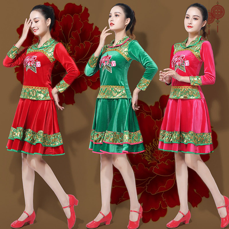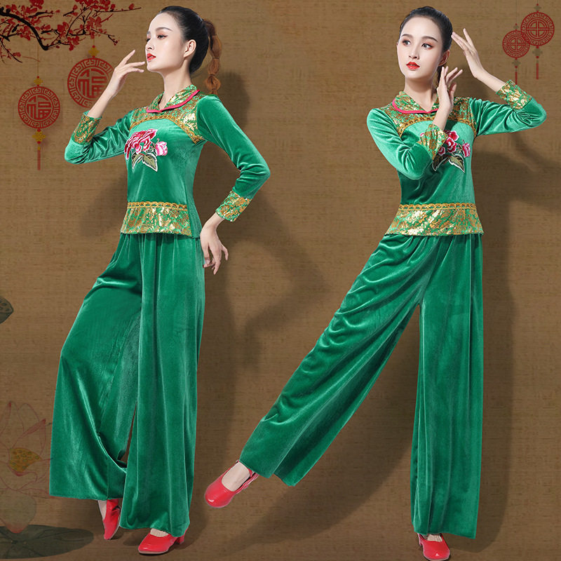 秋冬新款广场舞服装套装金丝绒长袖古典舞蹈中老年演出服表演服装