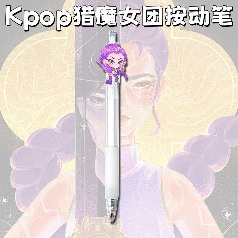 Kpop猎魔女团周边按动中性笔动漫卡通可爱高颜值笔学生考试黑色笔