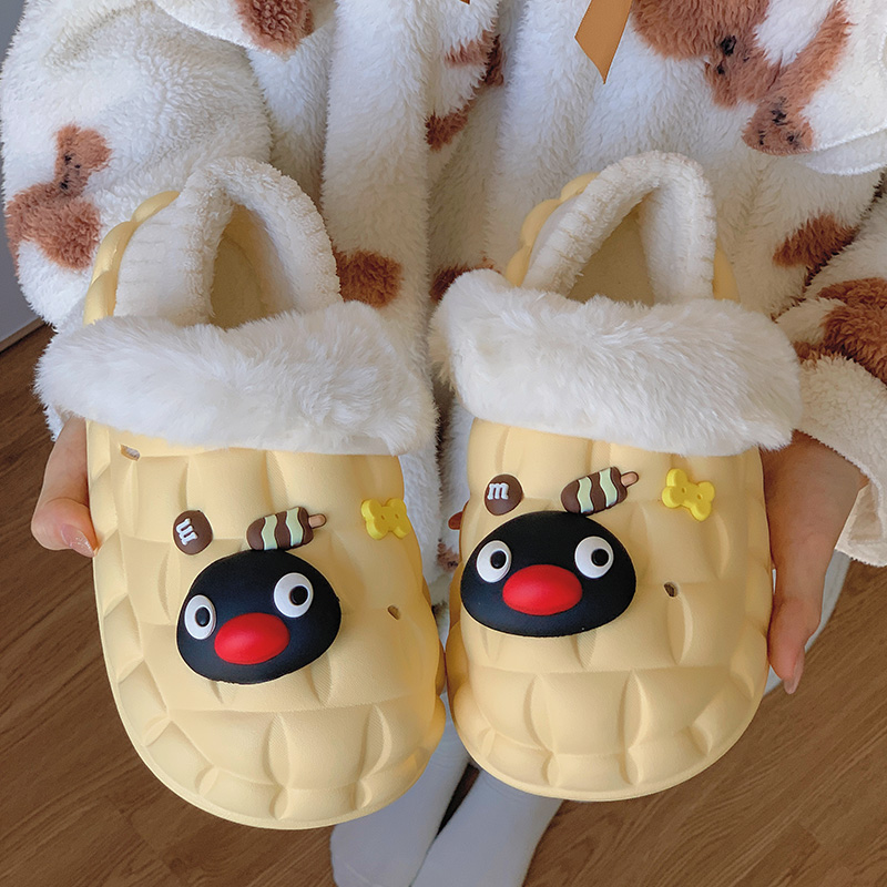 包跟保暖可爱企鹅外穿防滑棉拖鞋