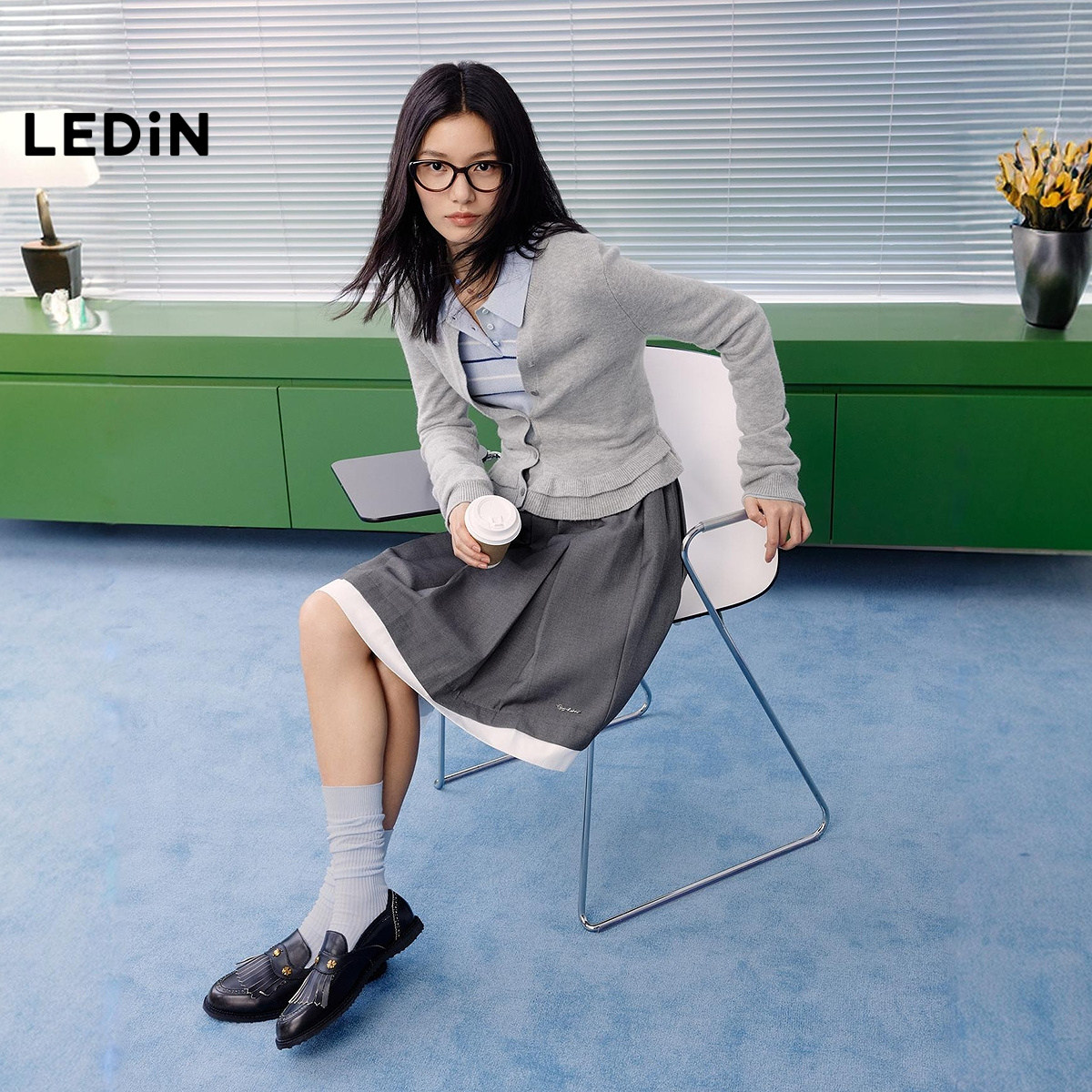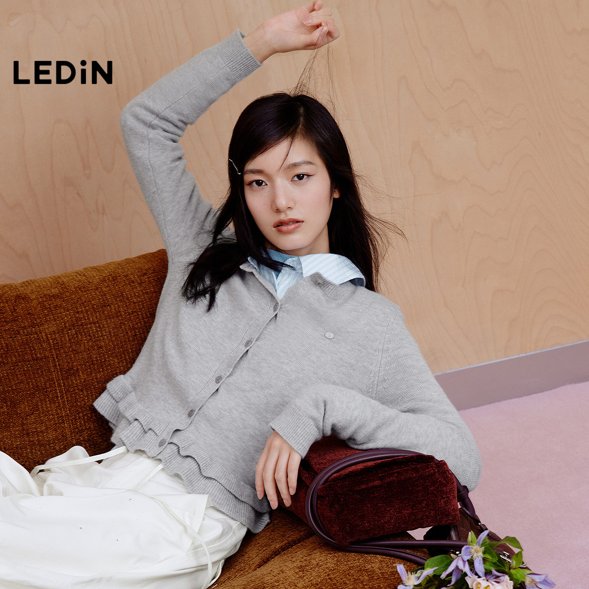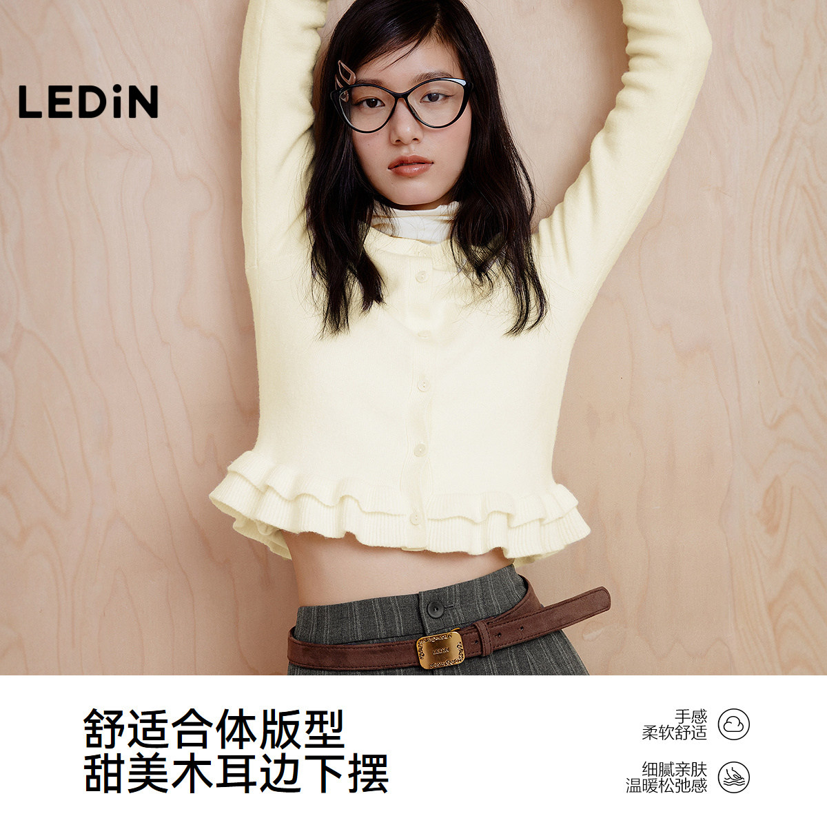 【7-day】乐町甜美花边针织开衫上衣女冬季新款基础内搭圆领毛衣