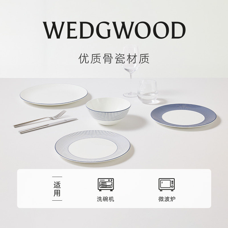 WEDGWOOD威基伍德蓝调几何两人食骨瓷餐具组乔迁礼餐具餐盘碗送礼