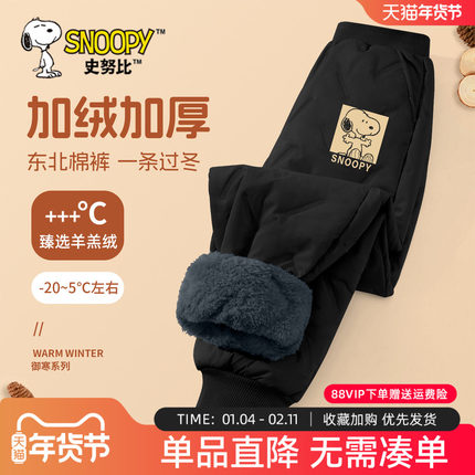 史努比男童加绒裤子冬季加厚羊羔绒棉裤男孩一条过冬裤儿童保暖裤