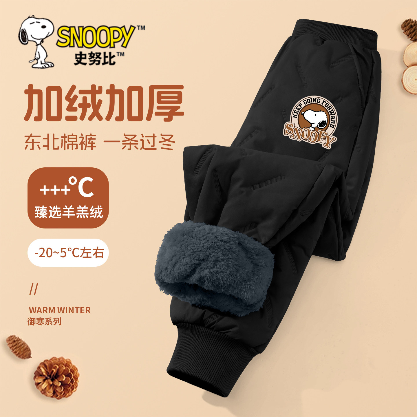 史努比加绒裤子男童羊羔绒保暖裤