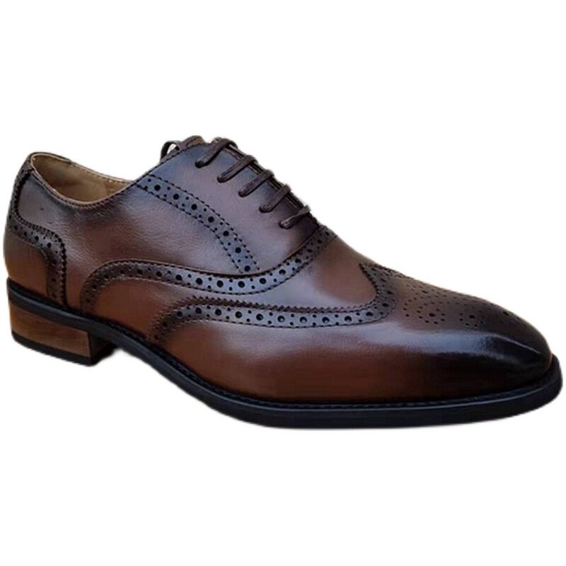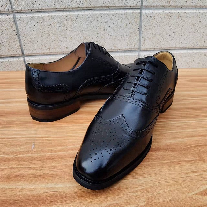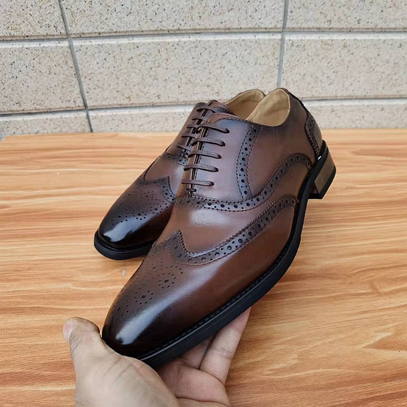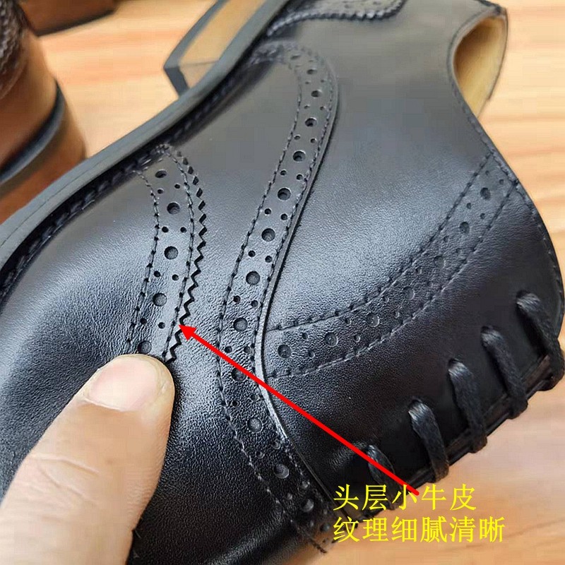 高端商务外贸男鞋头层牛皮秋季英伦布洛克雕花正装皮鞋男真皮尖头