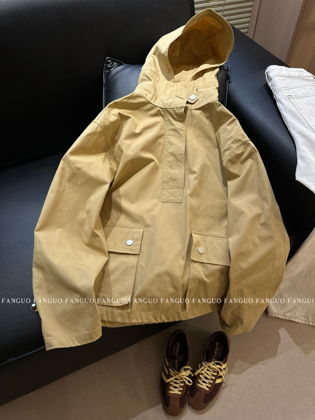 韩国urb30 瑞士棉挺括高级帅痞工装夹克短款风衣女 秋新款