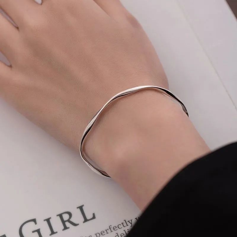 莫比乌斯环手镯女925纯银光面细款实心镯子学生简约高级感不掉色