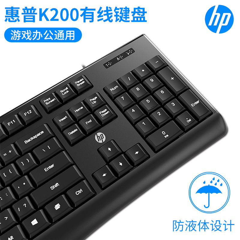 正品惠普K200有线键盘静音笔记本台式机办公设备超薄耐用简约轻便